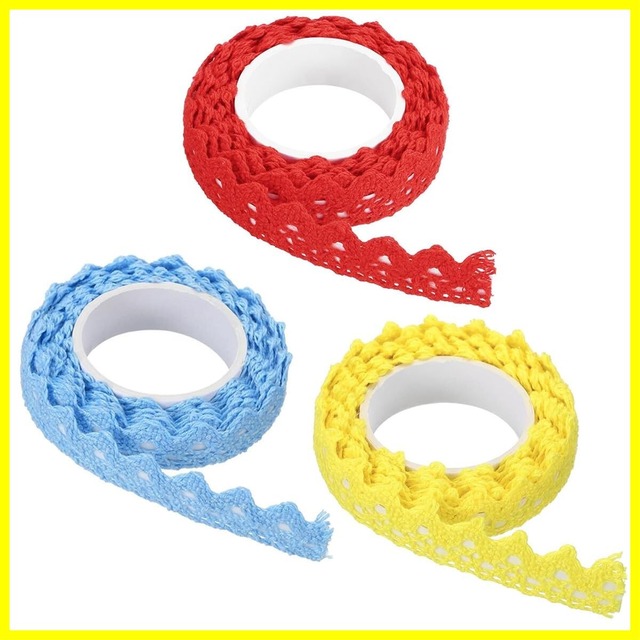 カラフル レースリボン、3巻 工芸品の飾りレース リボン マスキング装飾テープ レーステープステッカー、ファブリックレースリボン DIY カードメイキング ギフト包装 縫製素材 結婚式 手帳装飾