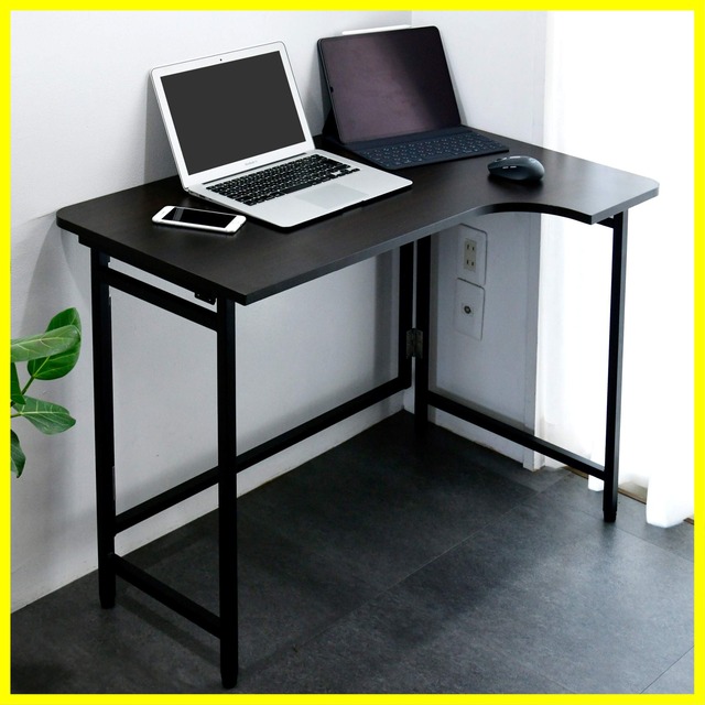 山善(YAMAZEN) デスク (L字デスク) 折りたたみ 傷・汚れ・水分・熱に強い天板 なめらかな表面 角が丸い アジャスター付き 幅90×奥行60×高さ70.5cm 完成品 ダークブラウン/ブラック RPSTC9060HDBRBK テレワーク