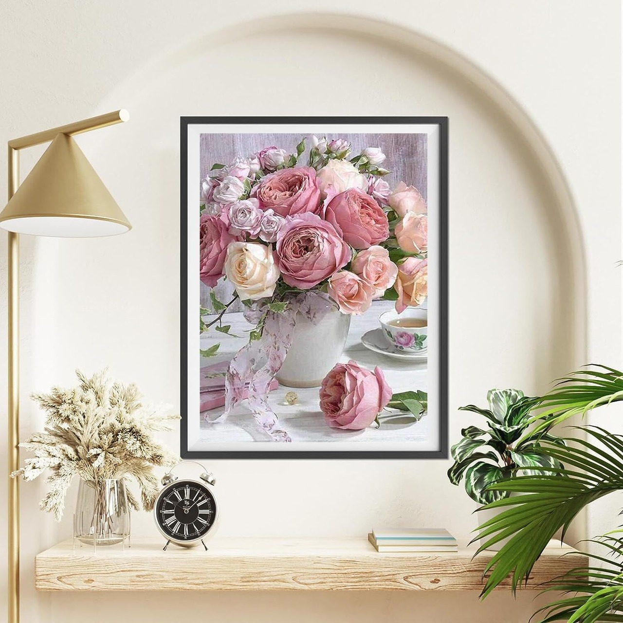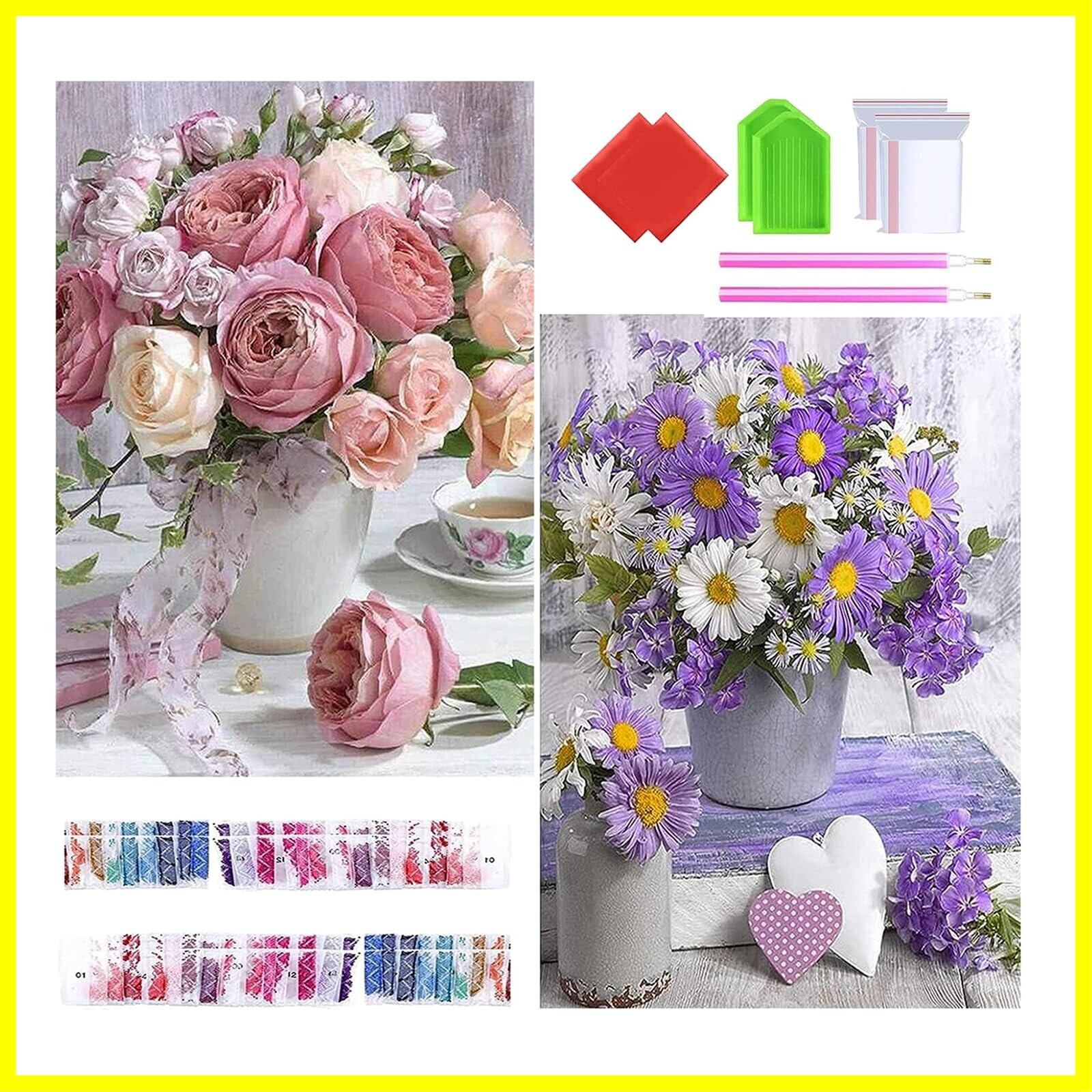 2枚ダイヤモンドアート キット Wikrtoria 5D ダイアモンドアート セット 全面貼り付けダイアモンドビーズ絵画キット お花 手作り絵画 手芸キット モザイクアート ハンドメイド かわいい 芸術品 装飾 ダイヤモンド塗装 立体画面 壁掛け ツール30x40cm