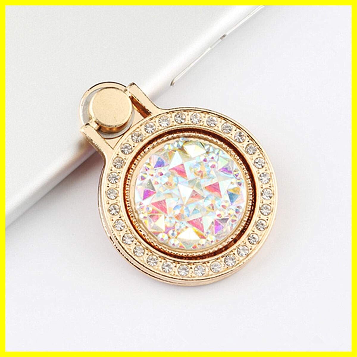 NEMISO スマホリング バンカーリング 懐中時計型 キラキラ ダイヤモンド付き ホールドリング スマホスタンド スマートフォン タブレット ホルダー 薄型 指輪 リング 携帯アクセサリー スタンド機能 落下防止 車載ホルダー 360回転 iPhone/Android各種他対応 (ゴールド)