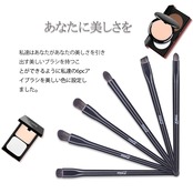 【アイメイク専用ブラシ6本セット】アイシャドウブラシ(3本)、ブレンディングブラシ、ノーズシャドウブラシ、アイブロウブラシなどがセットの中に入っている。ナチュラルメークからパーティーメイクまで、このワンセットでばっちり。