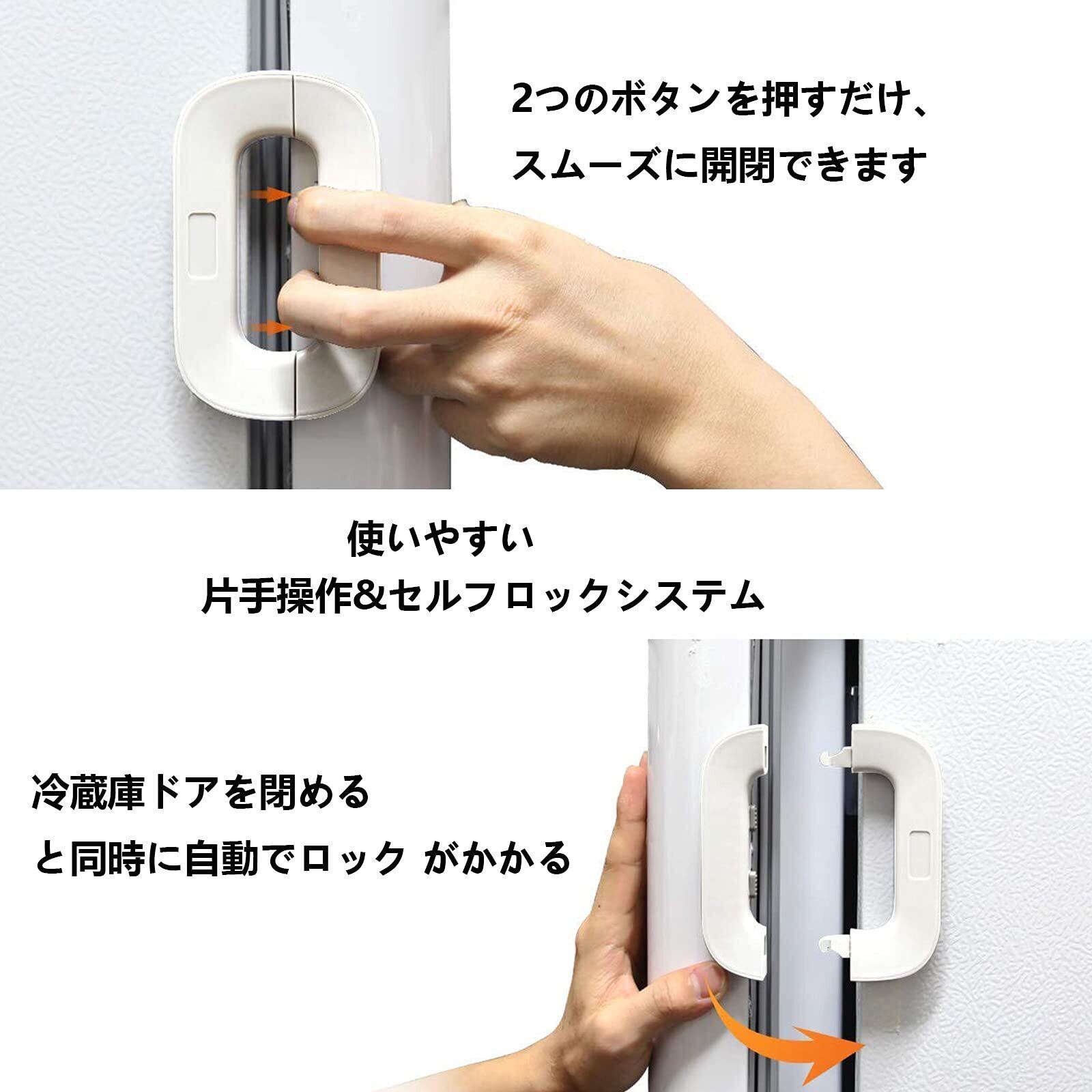 【簡単操作】ロックの側でボタンが二つあり、押すと冷蔵庫をうまく開けることができます。大人に対してははとても簡単なことですが、子供、ペットに対しては難しいことです。冷蔵庫ロックを貼り付けて子供、ペットが冷蔵庫のドアを勝手に開けたという心配がありません。