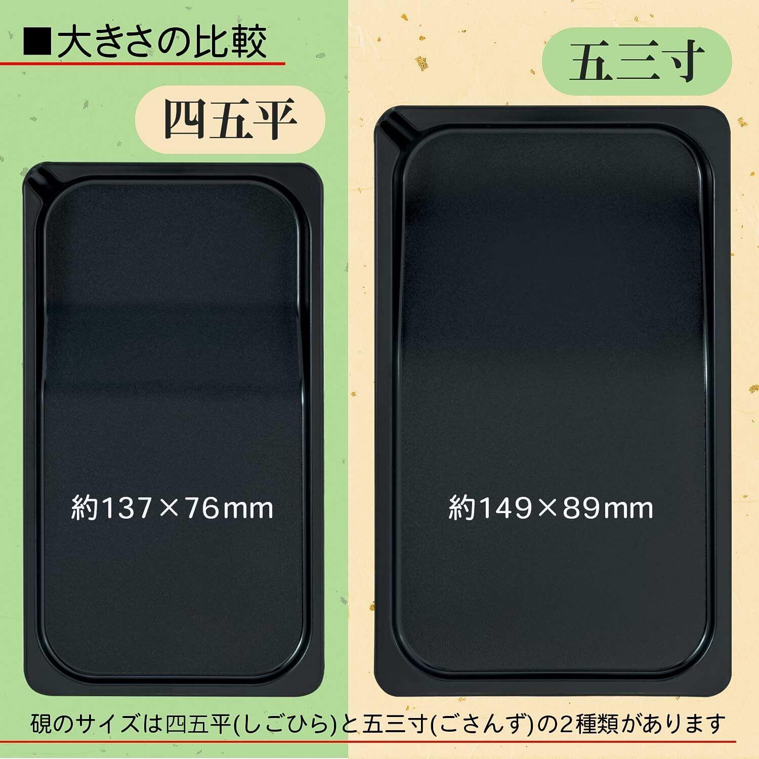 【特徴】表面には墨が磨りやすいようなシボ加工、裏面には筆ならし・筆置き付き