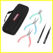 セット内容:平やっとこ(平ペンチ)*120mm、丸やっとこ(丸ペンチ)*130mm;ニッパー*105mm;ストレート ピンセット*140mm;先曲がり ピンセット*120mm;収納ケース(290mm*125mm*5mm)