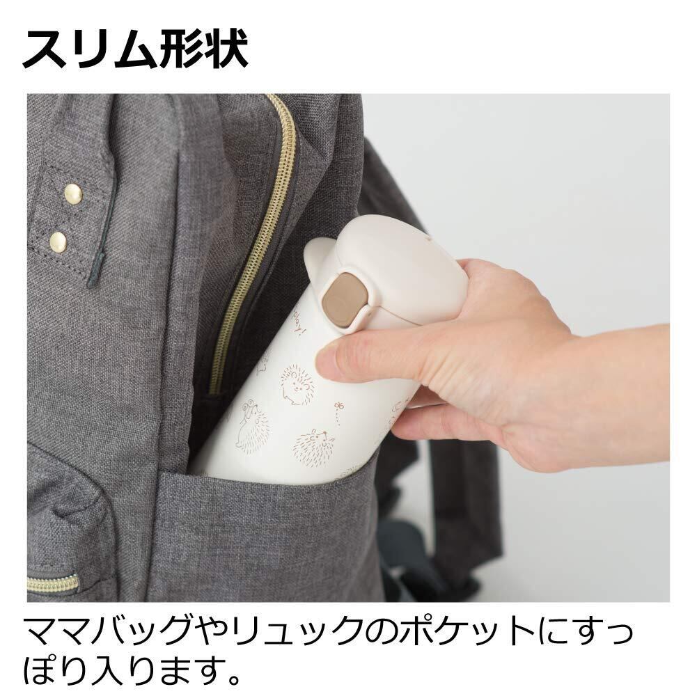マザーズバッグやリュックのサイドポケットにもすっぽり入るサイズで、ヘリがついているので赤ちゃんも持ちやすく、底面ラバー付きで強度もアップしました