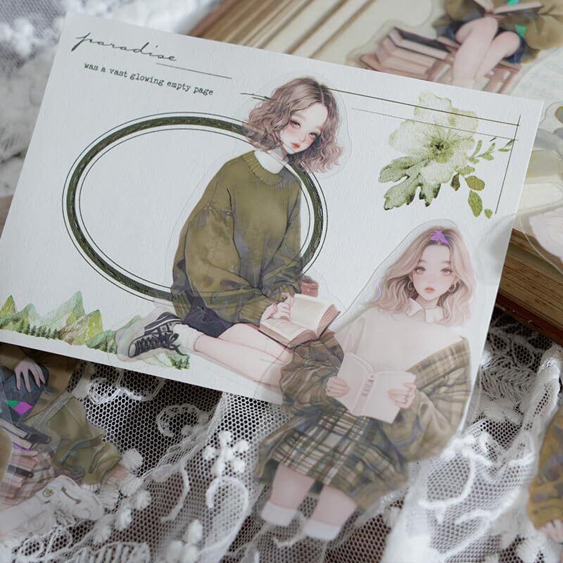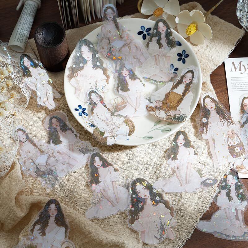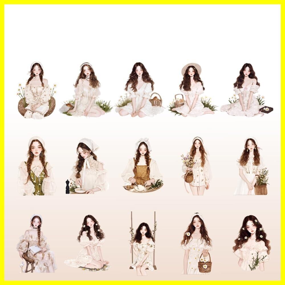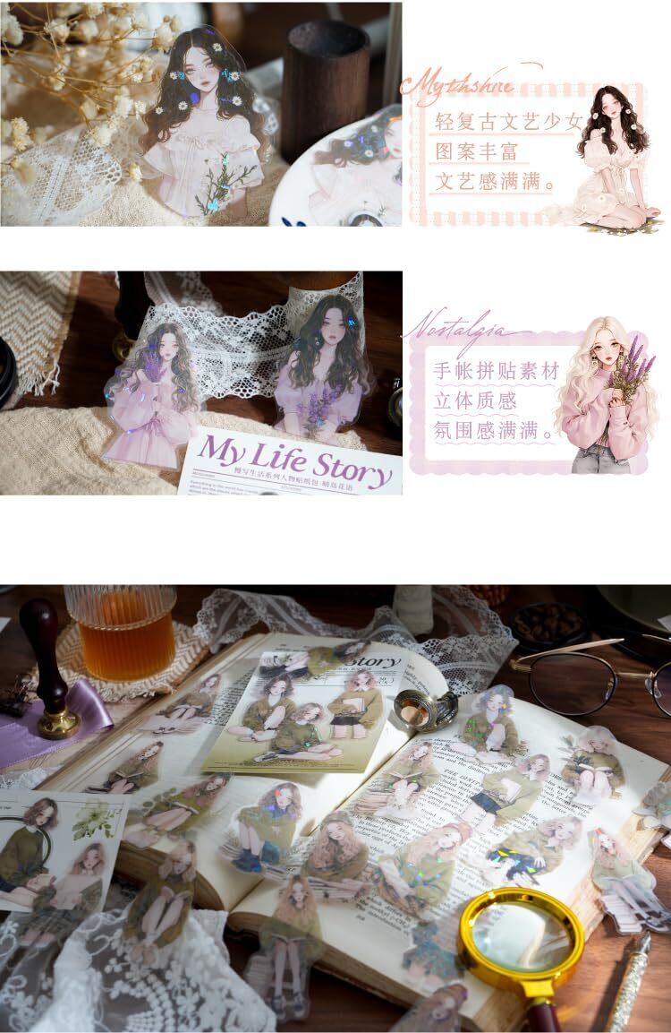 60枚 シール フレークシール コラージュ 素材 ペーパー 素材紙 レースユートピアステッカーレトロファッショナブルな女の子たち海外韓国 シール帳 ,メモ用紙ノート素材、日記装飾用品 (chunriyecan)