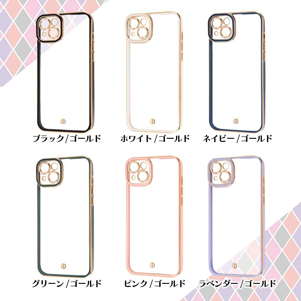 iPhone 14 Plus ケース TPU ソフト ケース メタリック Cleour ラベンダー x ゴールド クリア 透明