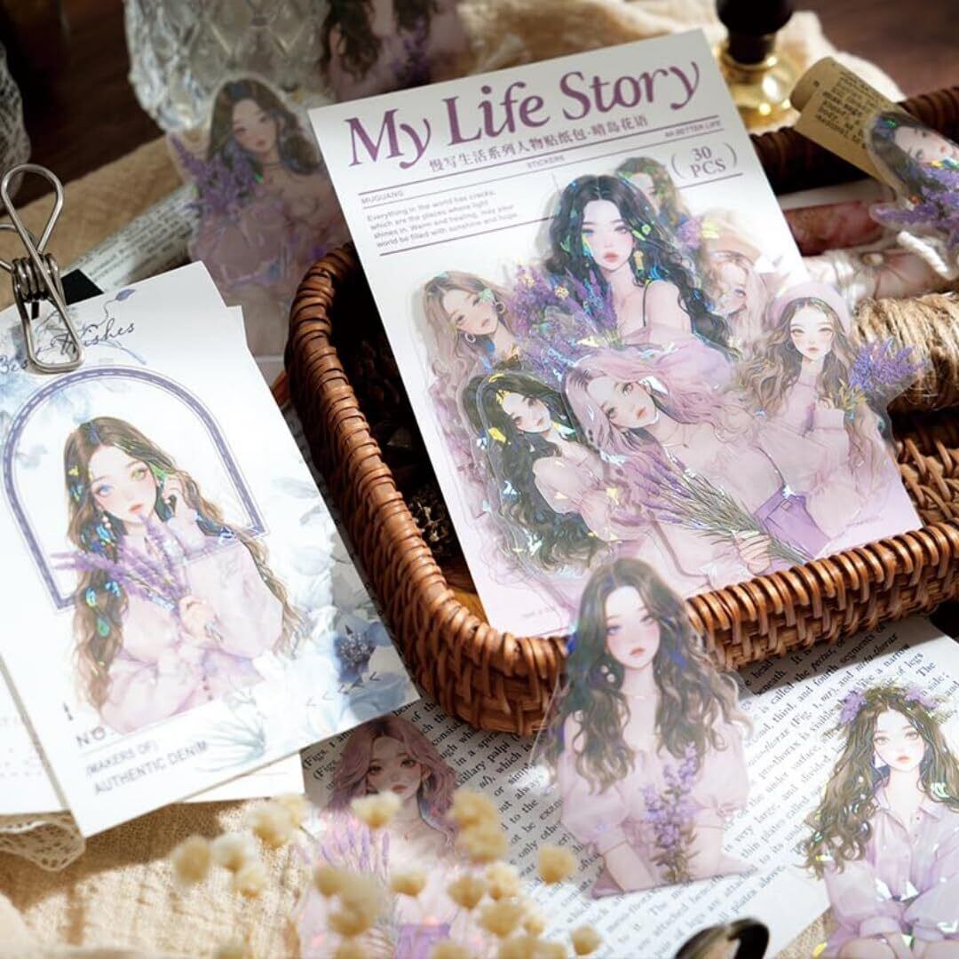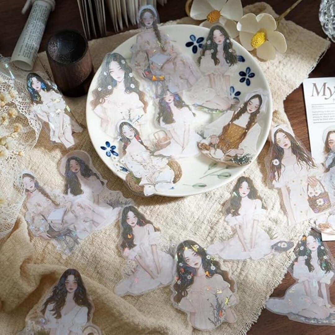 60枚 シール フレークシール コラージュ 素材 ペーパー 素材紙 レースユートピアステッカーレトロファッショナブルな女の子たち海外韓国 シール帳 ,メモ用紙ノート素材、日記装飾用品 (qingdaohuayu)