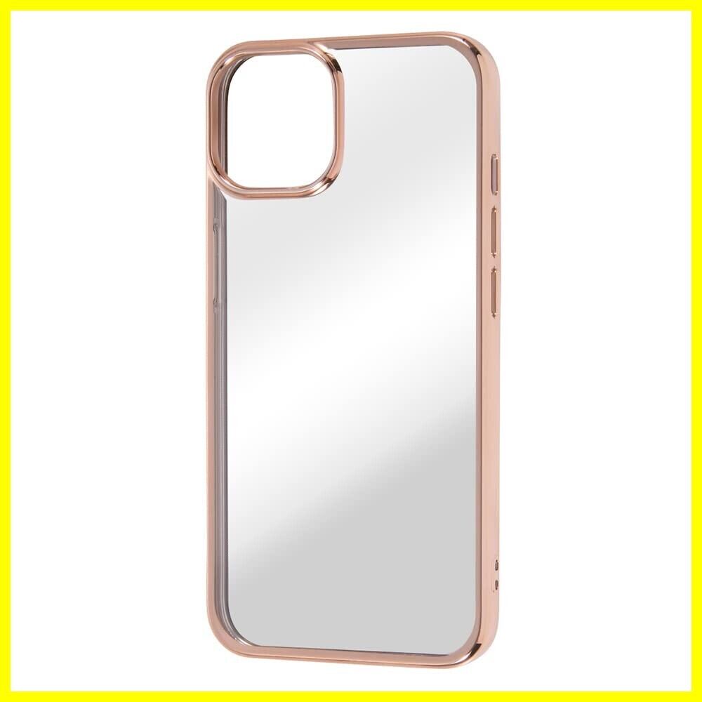 iPhone 14 ケース/iPhone 13 ケース メタリック フレーム クリア x ピンク ゴールド クリア ケース