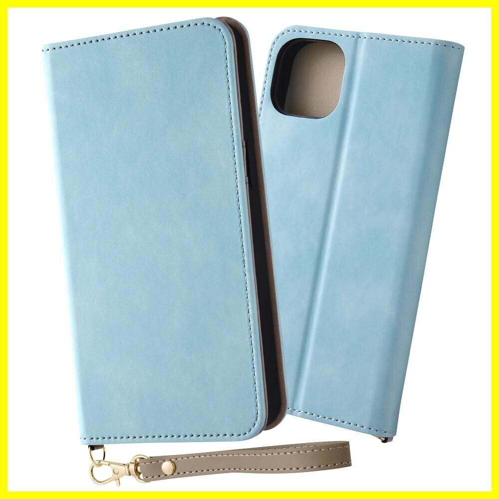 iPhone15 Plus ケース 手帳型 ハンドストラップ付き マグネット無し スタンド機能 カード3枚収納 アイフォン 15 プラス カバー/ブルー