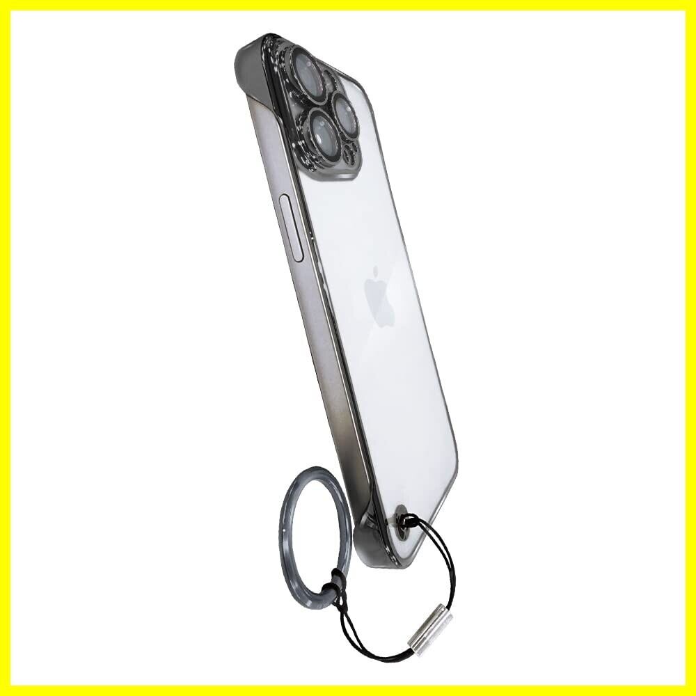 iPhone 14 Pro ケース 超軽量18g 黄ばまない クリアケース カメラ保護 リング ストラップ付 メッキ加工 ハードケース 精密設計 ウルトラライト/ブラック