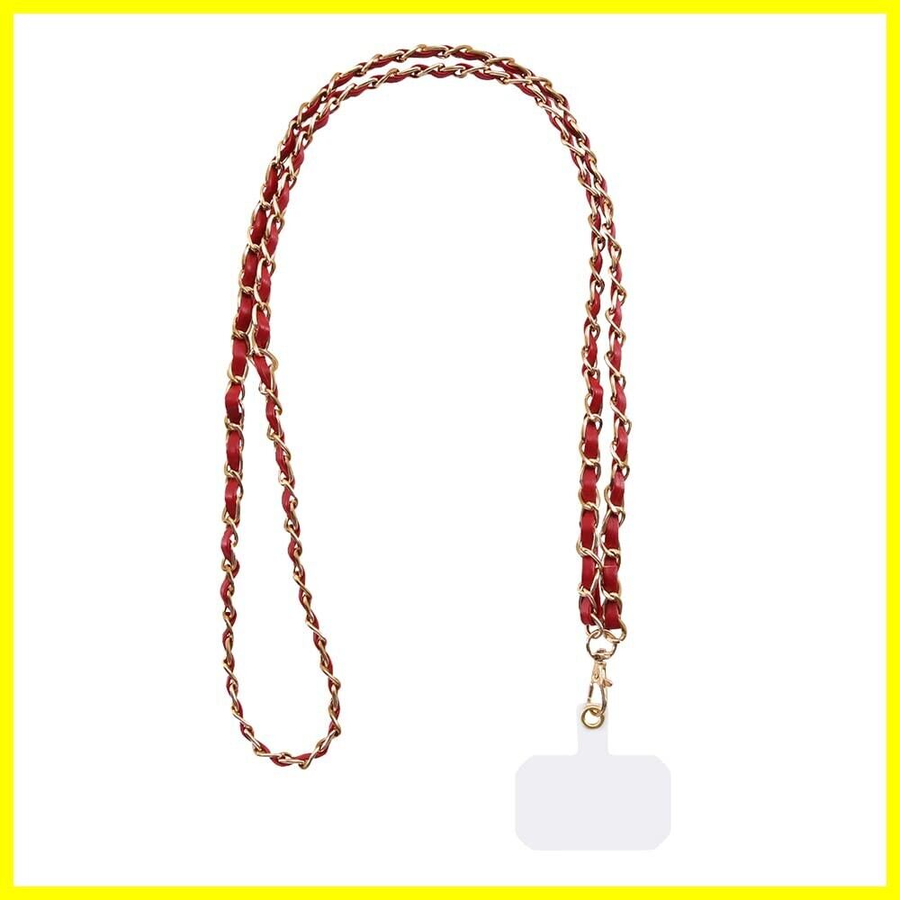 スマホ ショルダー ストラップ スマートフォン/iPhone 全機種対応 レッド レザー x ゴールド スマートフォン スマホ ショルダー
