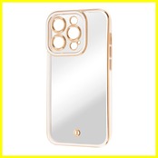 iPhone 14 Pro ケース TPU ソフト ケース メタリック Cleour ホワイト x ゴールド クリア 透明