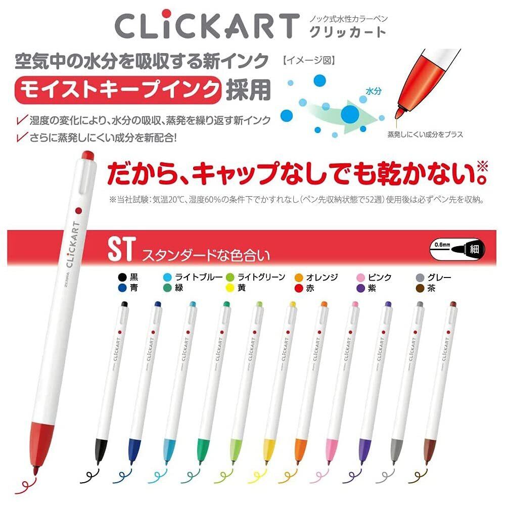 【CLICKART/クリッカート】キャップない、乾かない、色キレイ。ノック式水性カラーペン