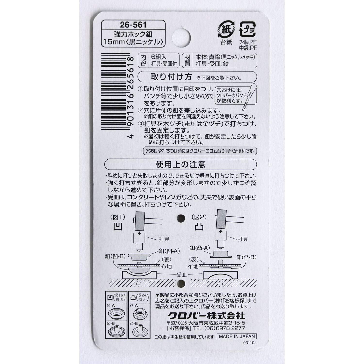 Clover 強力ホック釦 15mm 6組入り 黒ニッケル 26-561