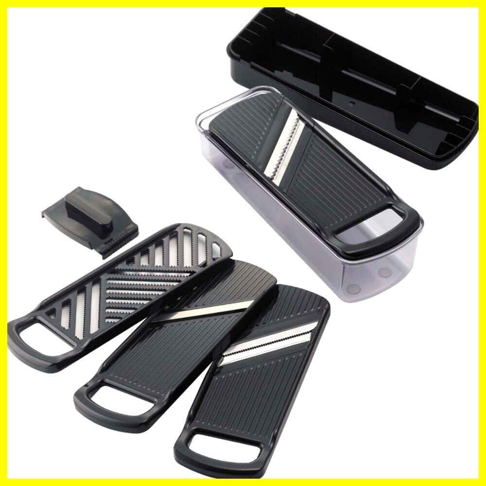 下村企販 [スゴ切れ] 4種の下ごしらえができる スライサーセット 【日本製】 時短調理 コンパクト収納 スライス/千切り/ツマ切り/おろし 安全ホルダー付き 専用ケース 野菜調理器 下ごしらえ ブラック 燕三条 43881