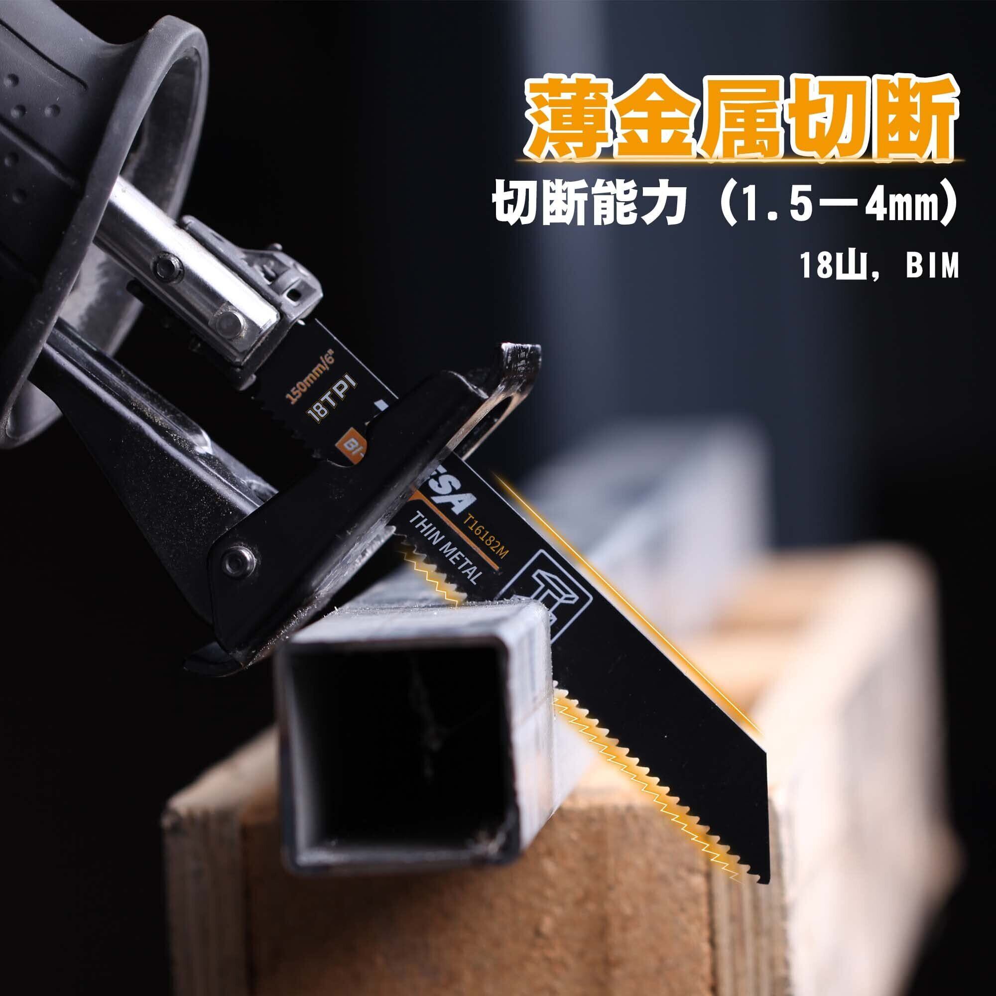 【豊富種類セット】2本*6山 バイメタル釘入りの木材切断ブレード、2本*10山 バイメタル金属解体用ブレード、2本*18山 バイメタル薄金属切断ブレード、 4本*6山 木工用ブレードなどの対応違いブレードを揃えて、切断効率を向上します。