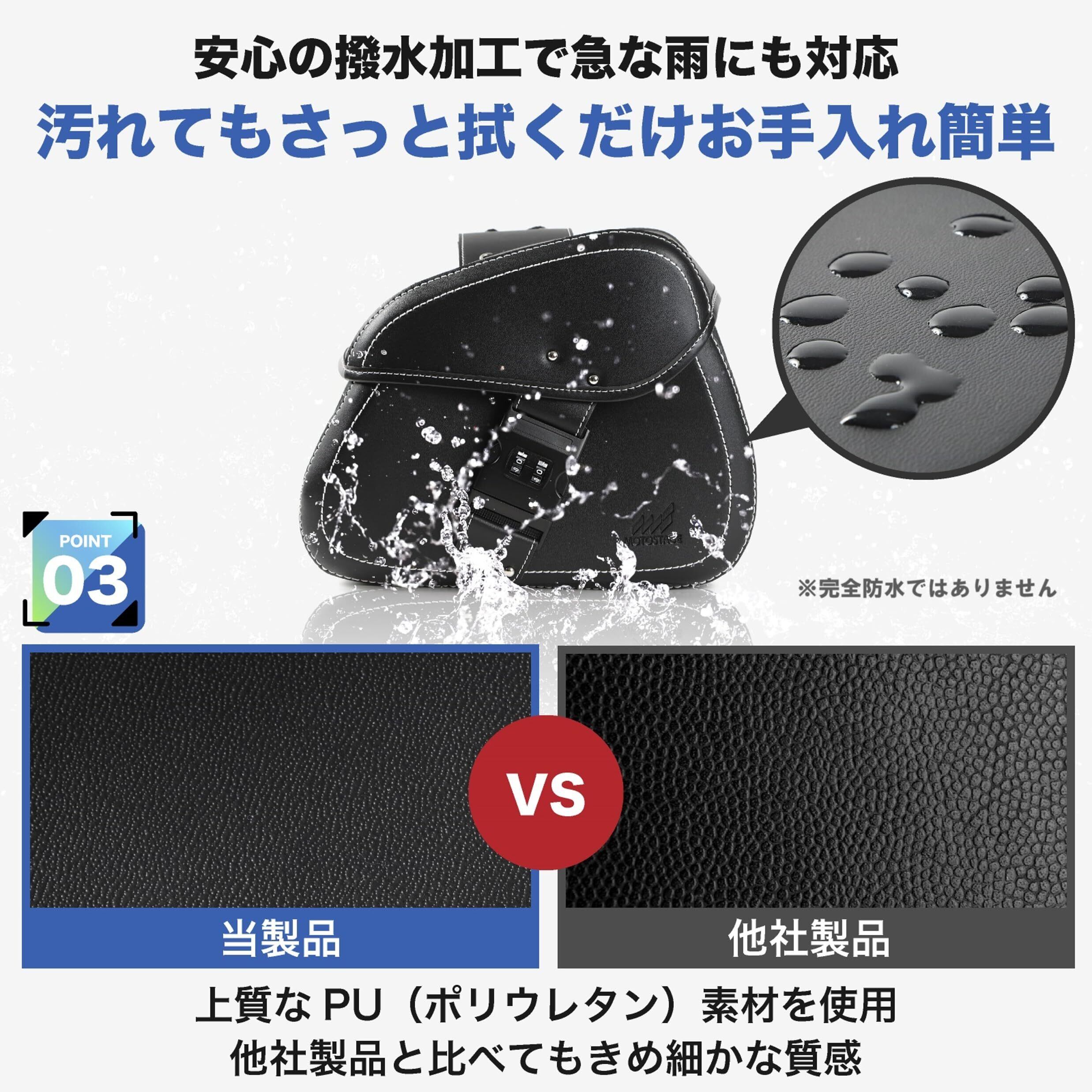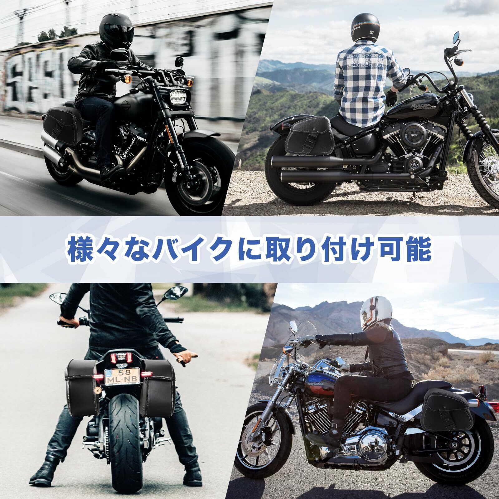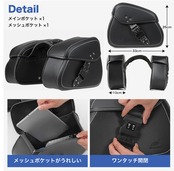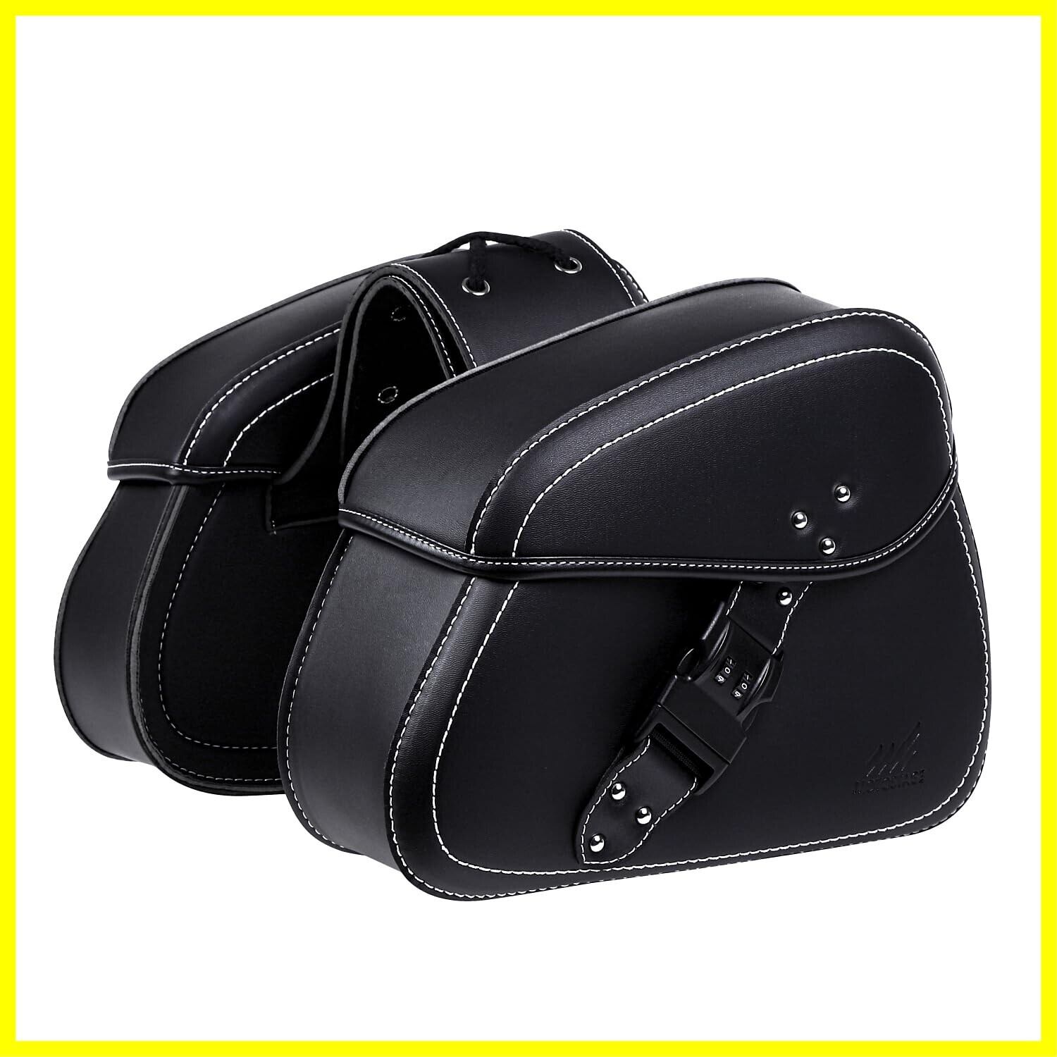 MOTOSTAGE バイク サイドバッグ ダイヤルロック付き 容量約6L×2 レザー 撥水 防水 アメリカン 鍵 ロック ブラック ツーリング (Medium, Modern, Black)