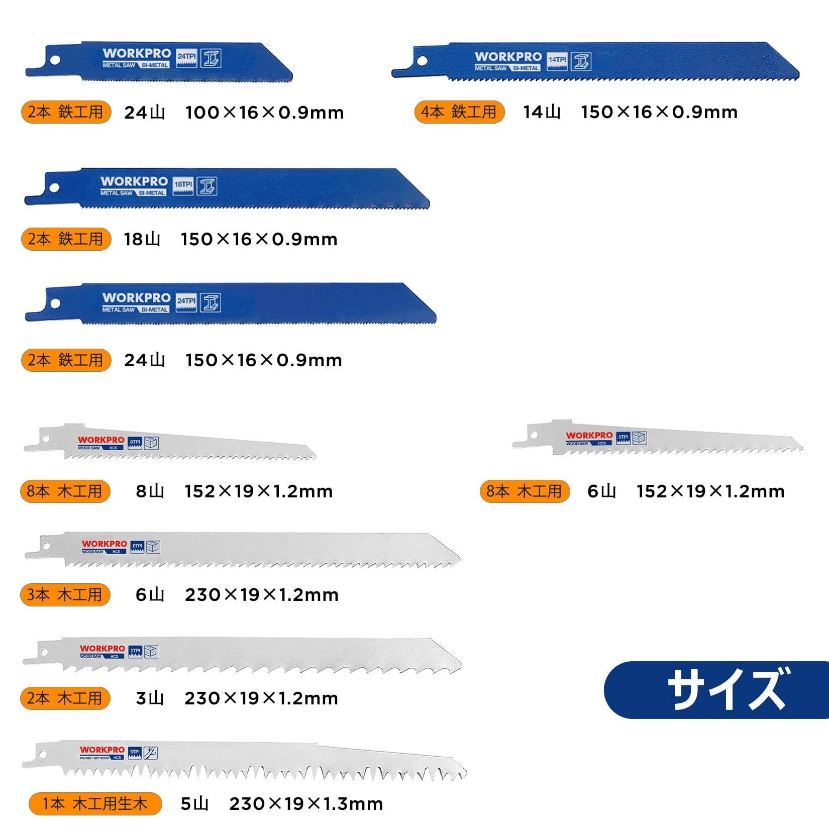 WORKPRO レシプロソー替刃 電気のこぎり替え刃 32点组 鉄工・木工用・生木用 枝打ち 庭木剪定 解体用 金属用 収納ポッチ付き