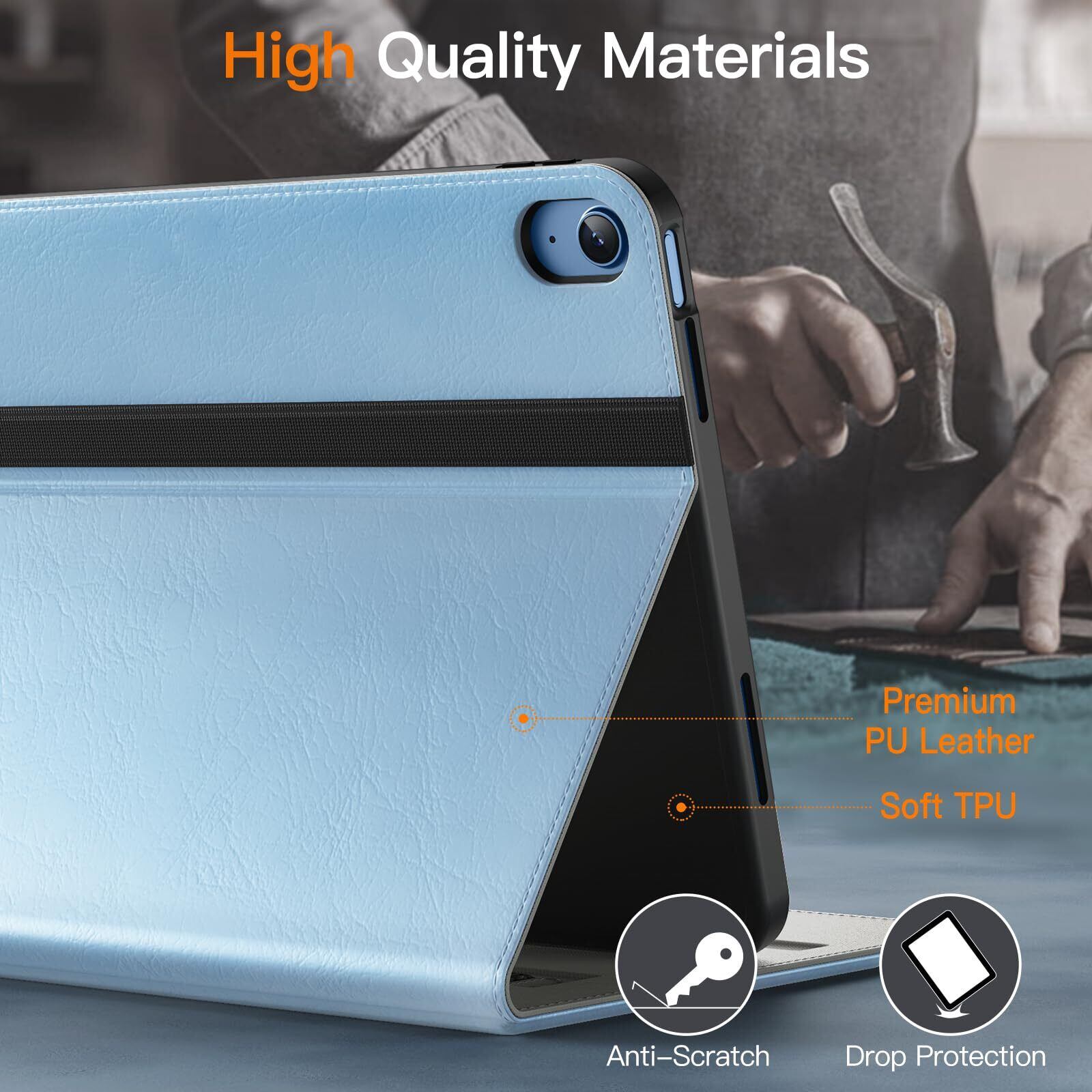 [使いやすい] このレザーケースは、iPad を複数の視野角に調整できるようにします。また、正確なカットアウトにより、すべての機能とボタンを簡単に制御できます