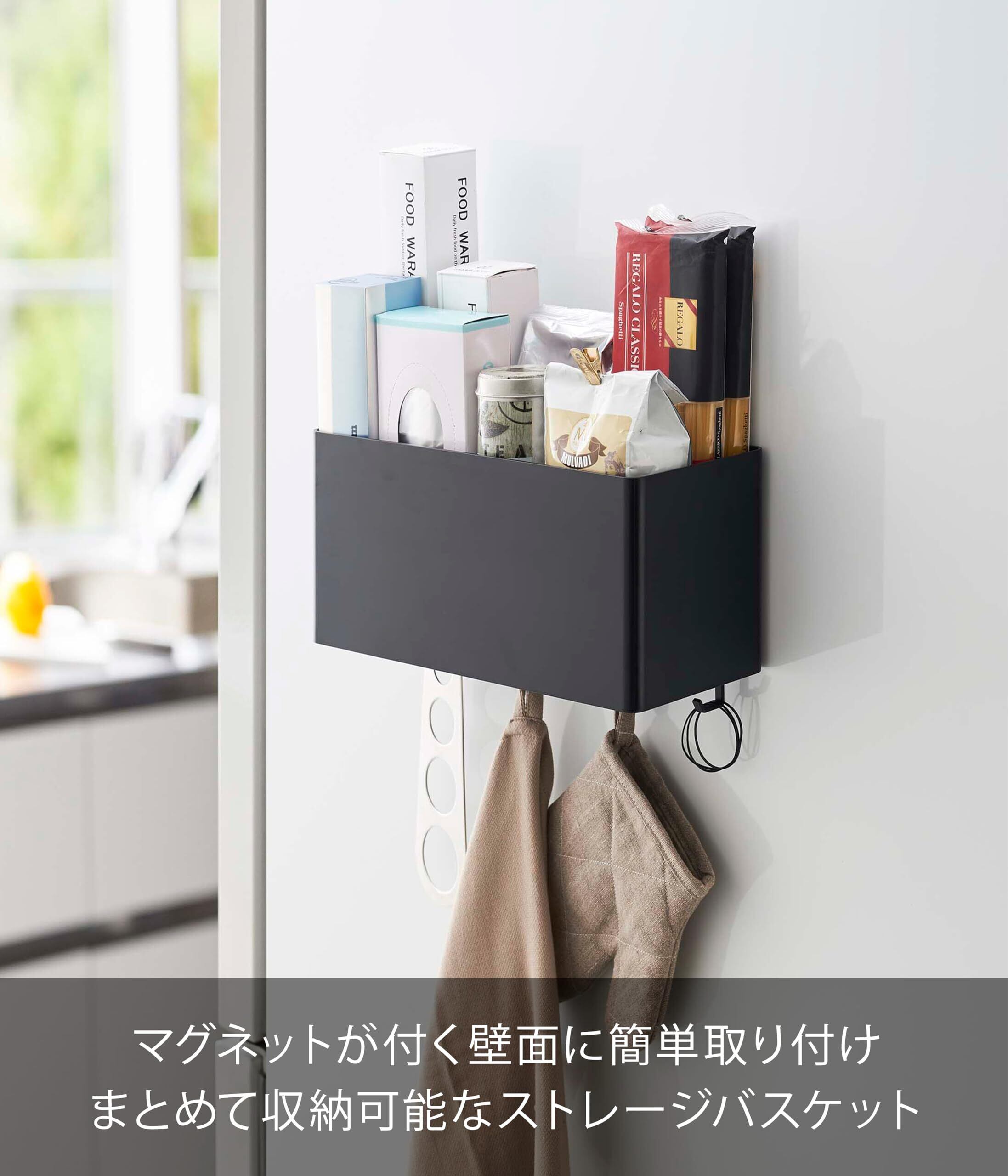 山崎実業(Yamazaki) マグネット ストレージバスケット ブラック 約W29.5×D12×H14cm タワー tower 小物収納 フック付き 4851