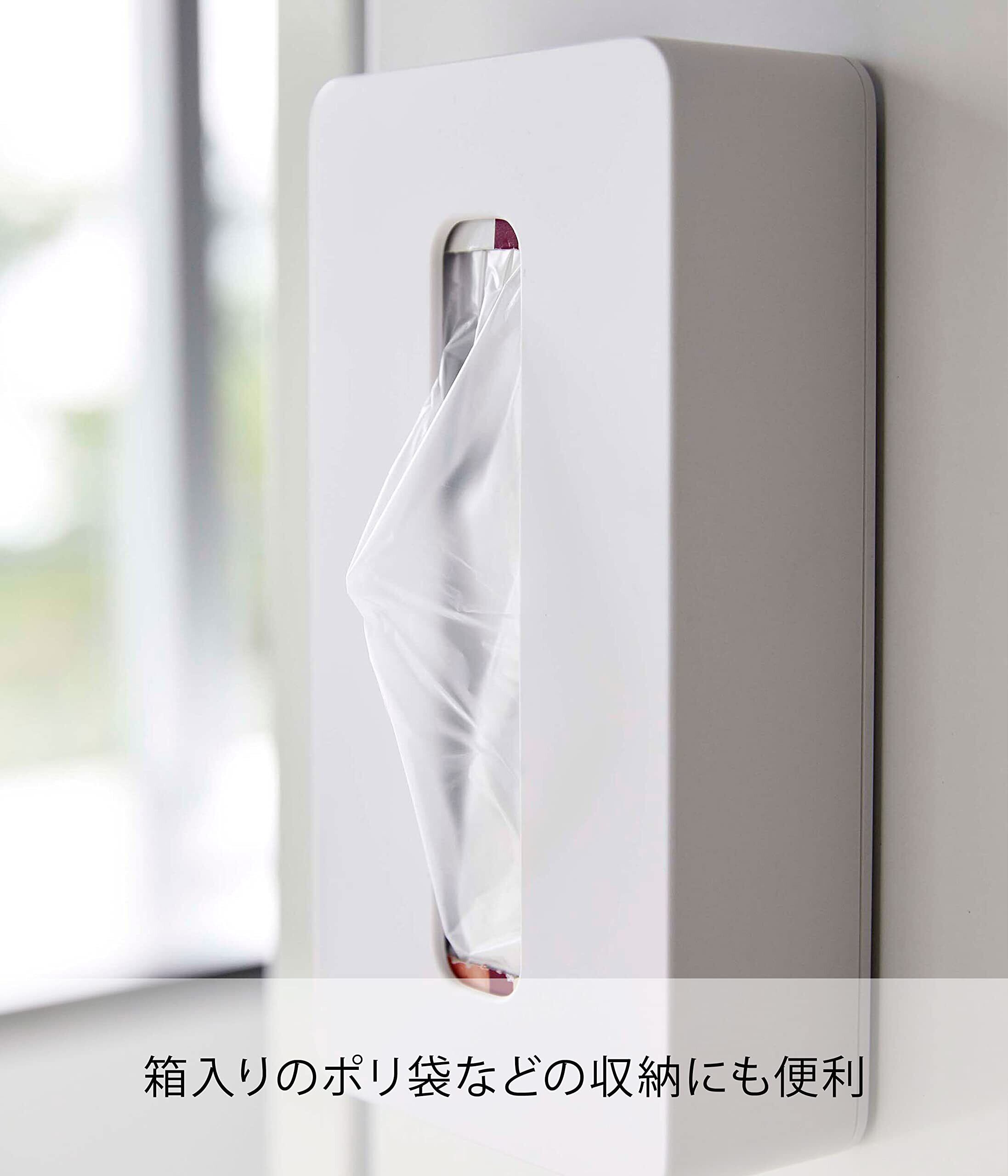 対応サイズ:内寸約W10.5×D4.5×H20.5cm ■対応ティッシュ 枚数300枚(150組)までの袋入りティッシュペーパー(ソフトパック) ※内寸:約W10.5×D4.5×H20.5cmです。お使いのソフトパックテッシュのサイズをご確認のうえご使用下さい。 ※箱ティッシュは対応していません。■取り付け可能な壁面 マグネットの付く平らな面・スチール壁面