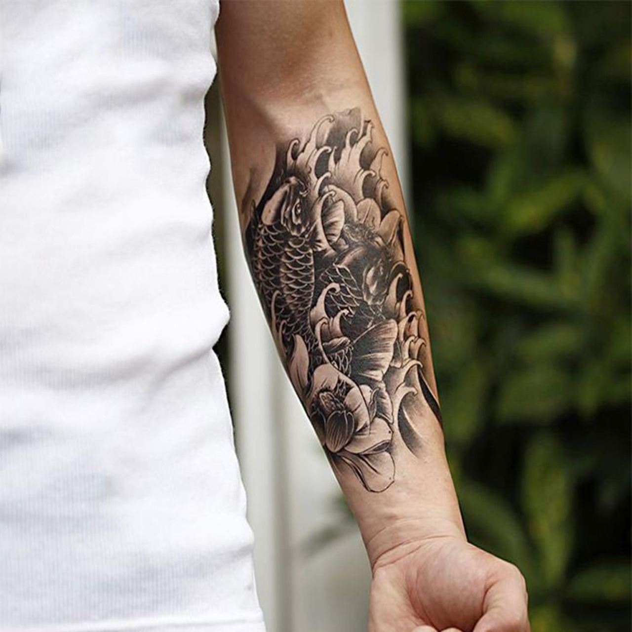 Yesallwas タトゥーシール 鯉 蓮の花 和柄 入れ墨シール リアル 大判 防水 長持ち 和彫り 刺青シール ボディーシール 子供 メンズ レディース Tatoo 15x21CM (C.6枚セット)