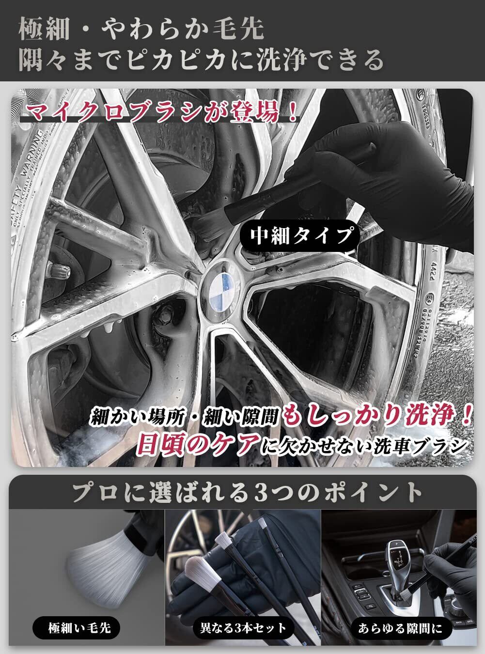 SEARISE ディテールブラシ 洗車ブラシ ディテーリングブラシ 極細タイプ エンブレム 隙間など細部洗浄用 3本セット