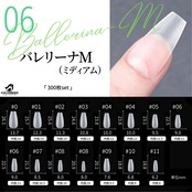 【材質】アクリル 【サイズ】15サイズ 【数量】300ピース(15サイズx2両手x10パレット) 【Tips】チップ先裏の数字がクリア系ネイル時に気になる場合は、数字にトップコートを塗っていただくとトップコートと一体化して数字が消えます。