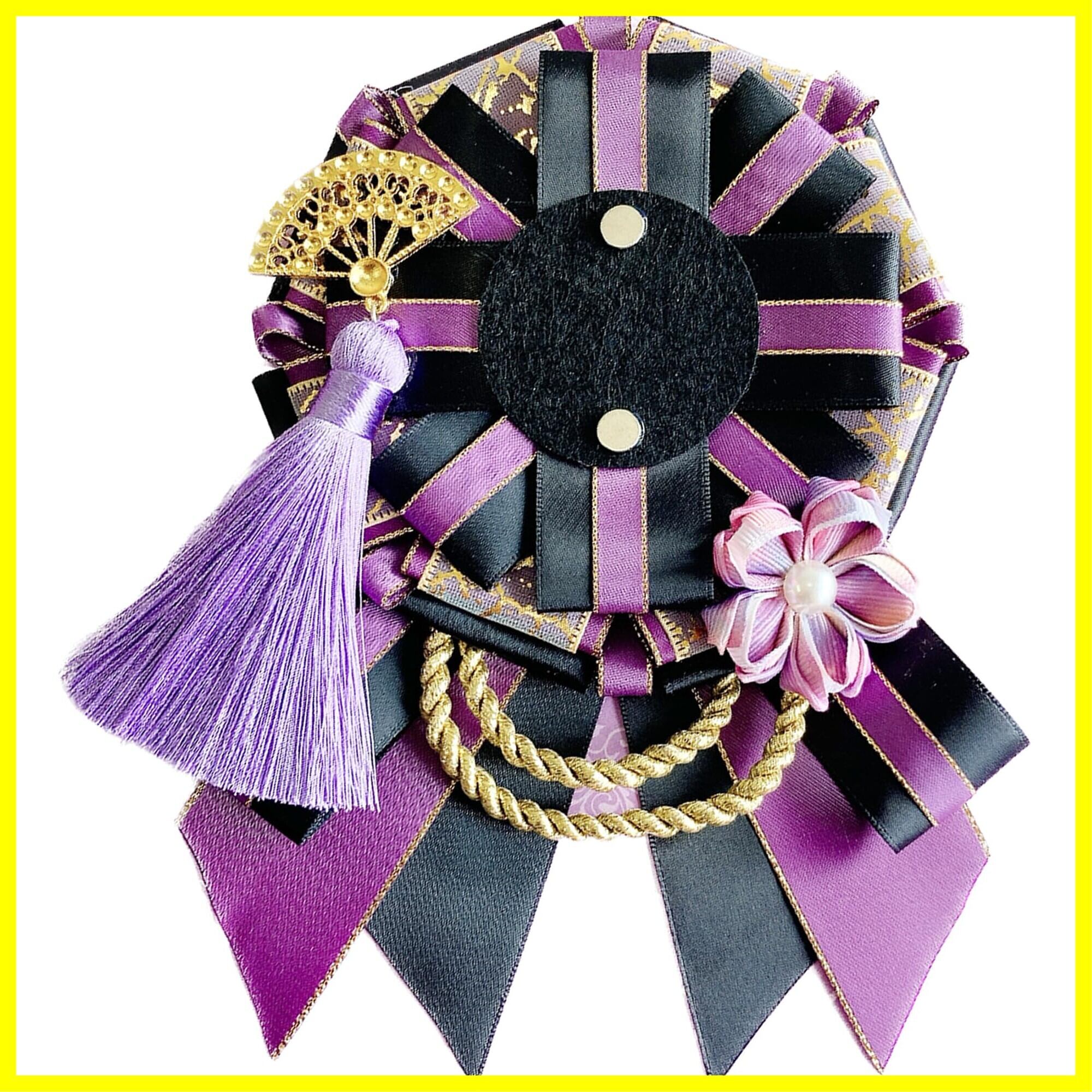 ジートリガー(G triger) 和風痛ロゼット 飾りロゼット 缶バッチロゼット 多種類 パーツ チェーン リボン 痛バッグ飾り 推し ハンドメイド DIY ロゼット飾り キャラクター パープル