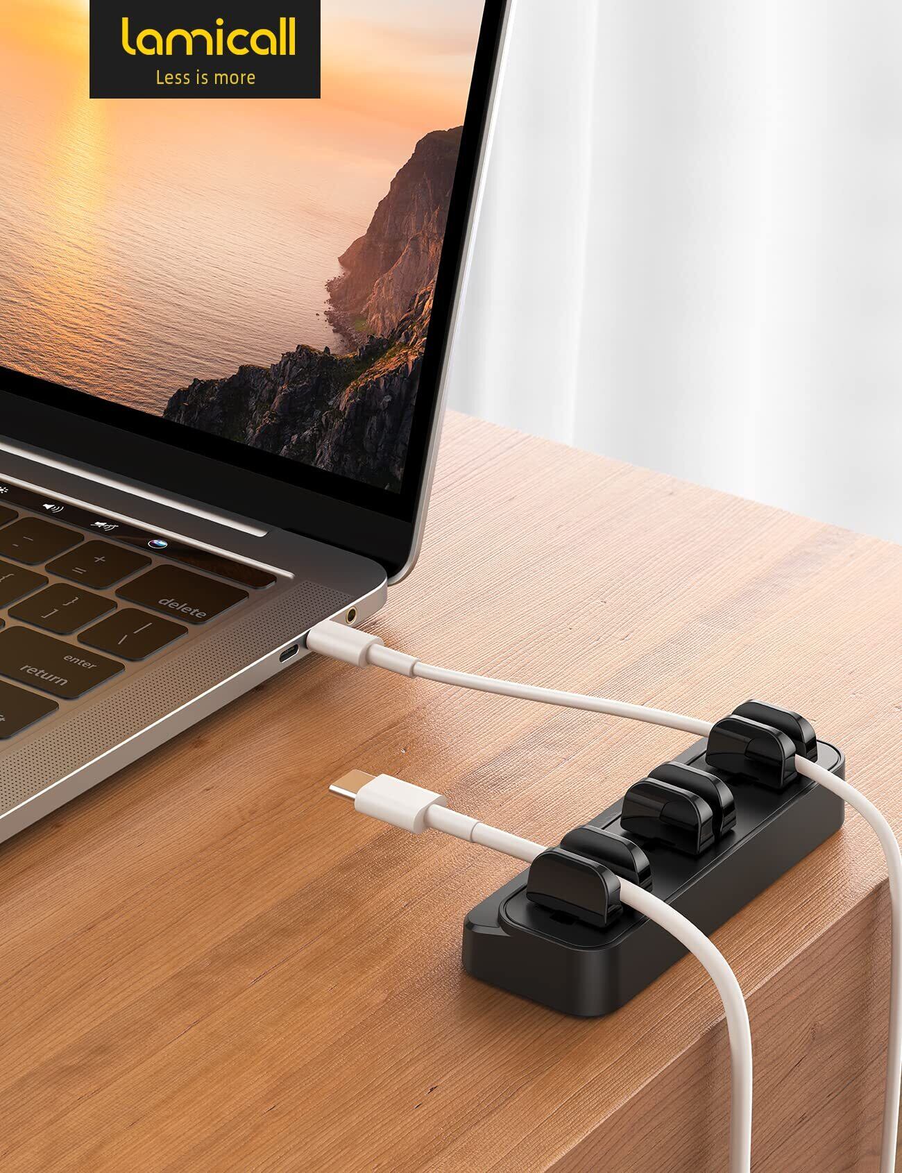 【2個セット・六本収納】 バネ式 ケーブルホルダー Lamicall ケーブル クリップ 固定 : 垂直 両面テープ 強力粘着 USB コードクリップ 壁 車 配線 収納 ホルダー 卓上 デスク 机 整理 まとめ 落下防止 ABS樹脂 すっきり lanケーブル type-cケーブル マウスライン キーボードライン 電源コード ヘッドフォンケーブル オーディオライン などに対応 黒 ブラック