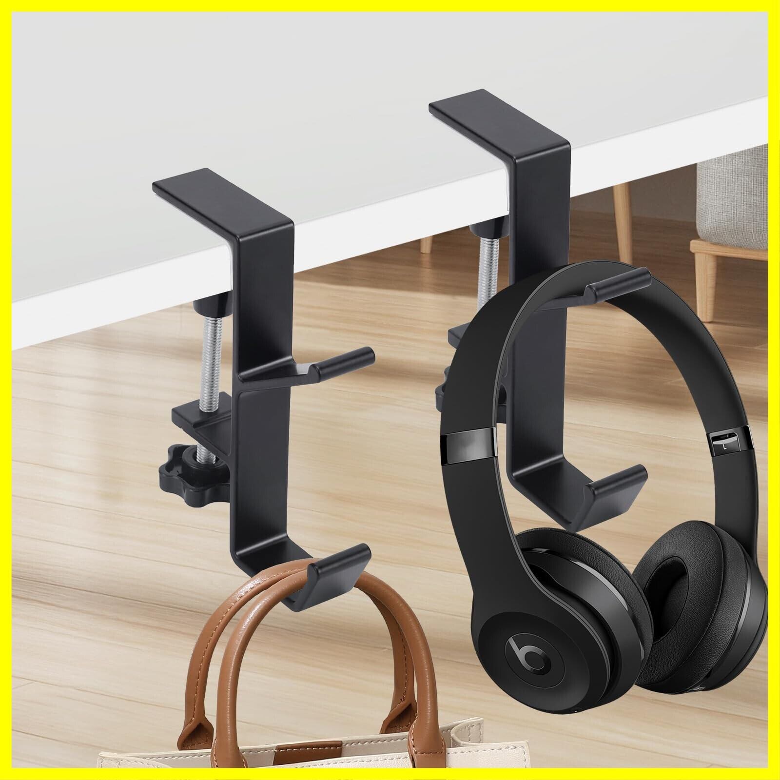 【便利な2フックデザイン】1つのフックに2つの掛け部を備え、バッグやヘッドホンなどを同時に掛けることが可能。効率的かつ便利なデザインです。