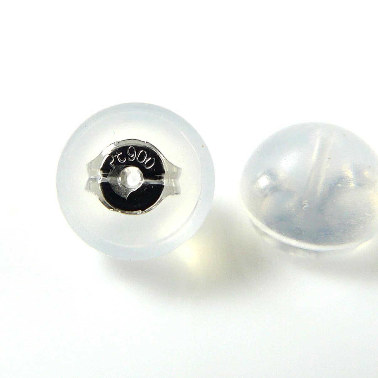 キャッチは、プラチナにシリコンでカバーしたダブルロック式です! きつすぎず、ゆるすぎず、しっかりとした造りですので落とす心配もありません。これで、キャッチをなくしたピアスも安心してドンドン使えますね^^ ●使用地金:Ptプラチナ900 ●サイズ:高さ:約4mm 直径:約5mm ピアス芯0.7mm以下のピアスに対応 ●キャッチはご注文数量1で2個1ペア分の販売になります。日本の工房にて、熟練の職人による制作のピアスキャッチです。