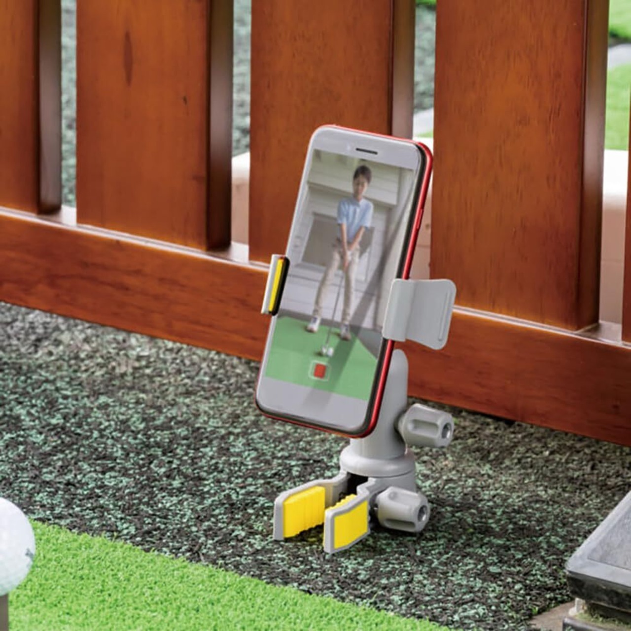 クリップタイプのゴルフ用スマートフォンホルダーです。様々な場所に設置・取り付けてスイングを撮影できます。(適合スマートフォンサイズ:幅40mm~90mm、重量270g以下)