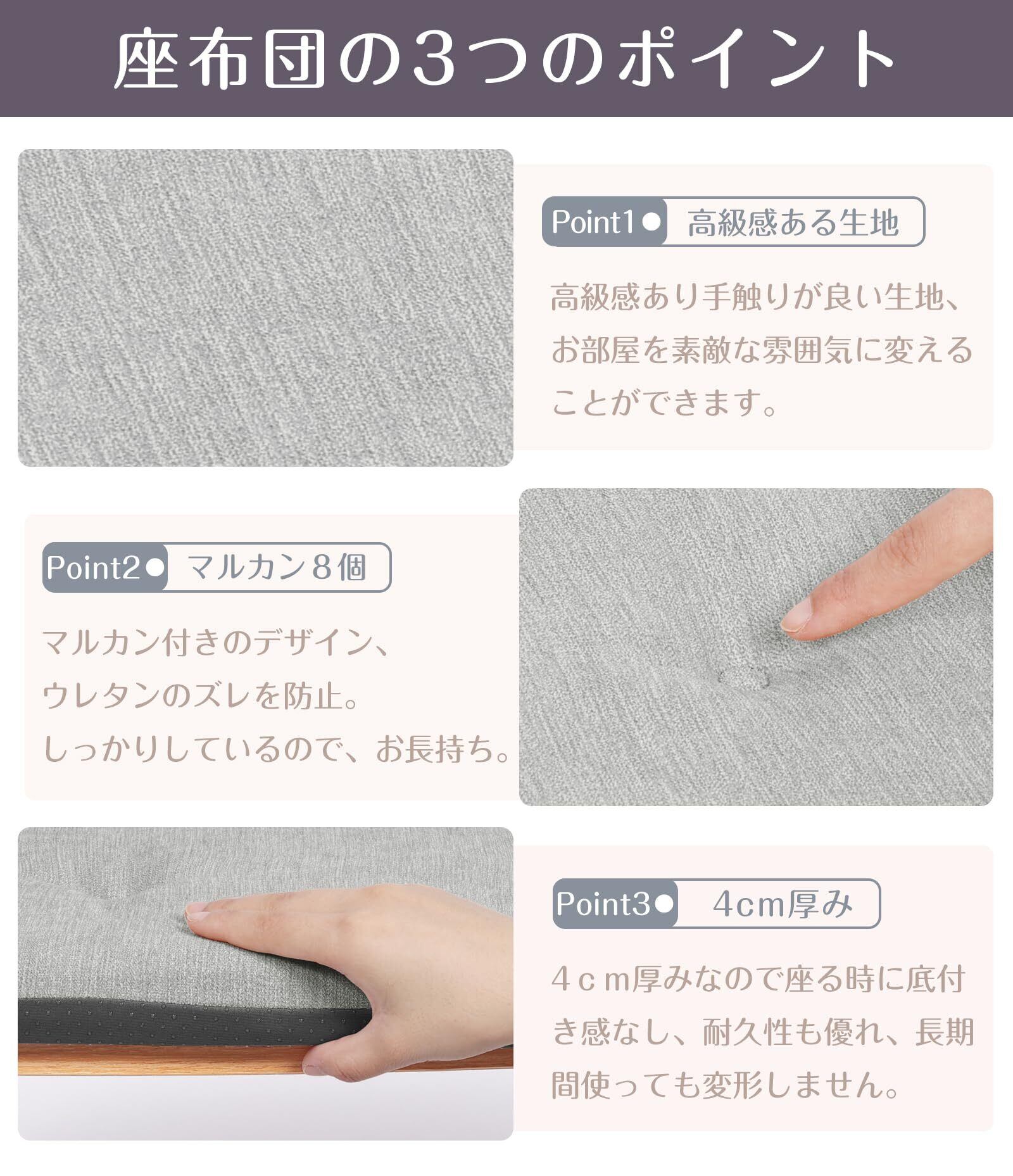【高品質な生地、4色展開】高級感があり手触りが良いポリエステル生地を使用、お部屋を素敵な雰囲気に変える事ができます。4色展開の明るい色、部屋に馴染む無地カラーで四季問わず使えられます、和室でも洋室でも似合う高反発クッション ✿この商品は表生地と中綿が一体型のタイプです。(カバー取り外し不可)