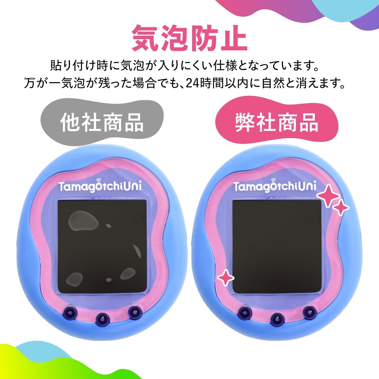 【対象機種】 Tamagotchi Uni ( たまごっちユニ ) 用 【充実のセット内容】:『保護シート2枚』・『拭き取りシート』・『クリーニングクロス』・『ホコリ除去シール』でフィルム貼りをサポートいたします。