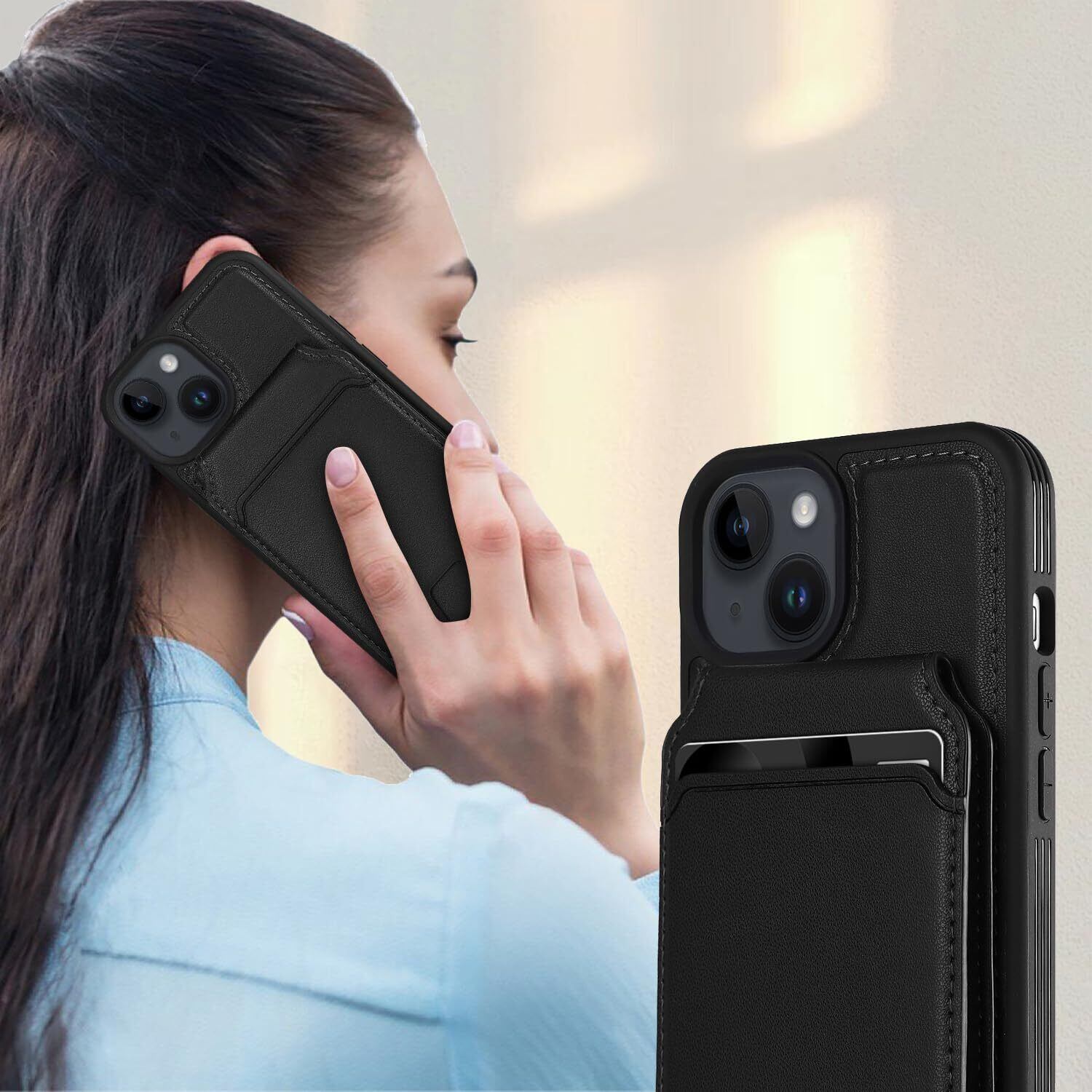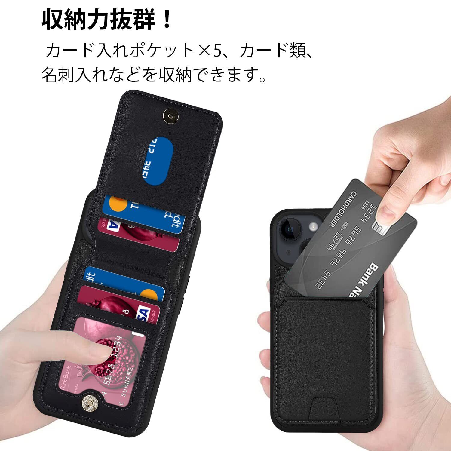 【リムーバブルカードケース】ケース背面には取り外し可能な磁気吸引カードケースが付属し、カードを5枚収納できる。たとえば、スイカカードなどの毎日の重要なカードや現金は簡単に保管できます。iPhoneシリーズ専用に設計されているので、ケースを装着したまま、音量ブボタン、カメラ、コネクターなどのを自由に使えます。実用性が高いです。