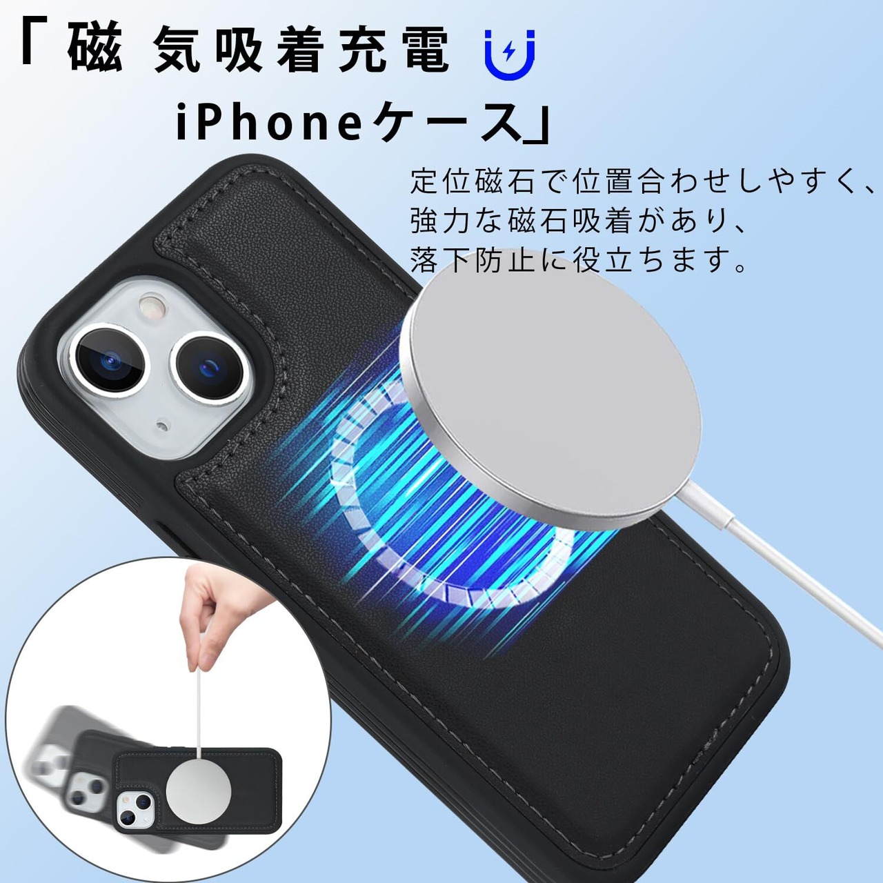 【MagSafe充電対応】:ケース背面にはMagSafeに対応する半円の専用デザインで、本体を入れたまま、横置きでも充電を容易く実現しました。使用中であっても、携帯電話の充電を邪魔しません。磁気吸引は強くならず、適切な範囲に制御されます。磁気が強すぎるためにカード磁気が失効することを避けます。MagSafe充電の取り扱い方について、本商品ページにて展示用のビデオをご覧くださいようお願いします。