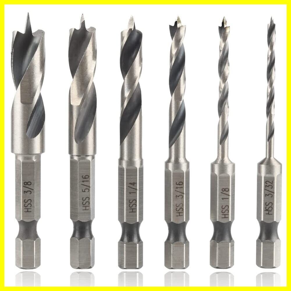 Wolfride 6本セット 六角軸木工ドリルビット 木工·樹脂用ビット 下穴 インパクトドライバー用 電動ドリル用 穴径9.5mm 7.9mm 6.35mm 4.76mm 3.175mm 2.38mm