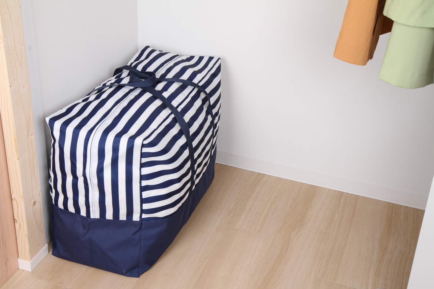 アストロ 収納ケース 羽毛布団用 シングル・ダブル兼用 大型 ネイビー ボーダー 洗える ボストンバッグ 大容量 820-12 大