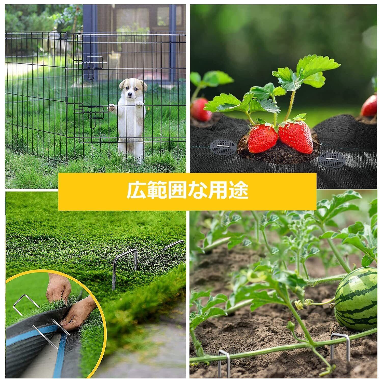 【広範囲な用途】防草シート、農業用防虫ネット、マルチ、灌水ホース、不織布、ビニールマルチ、各種シート・マット等の園芸用品をしっかり地面に固定させる押さえピンです。 ガーデニング・農業・庭用だけでなく、キャンプの時テントの固定ピンとしておすすめします 。