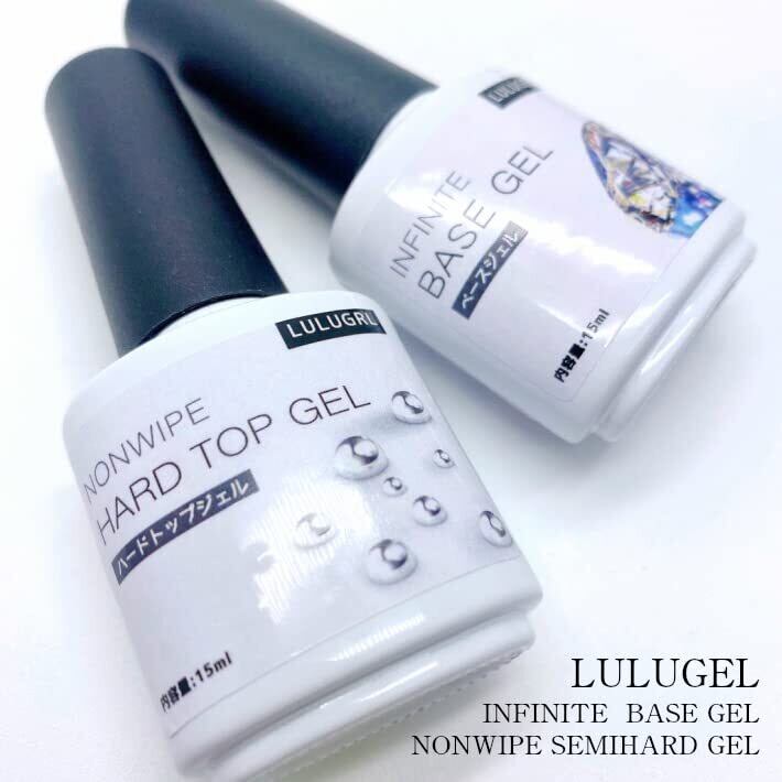 LULUGEL ジェルネイル ハード トップコート ベースコート 各15g ポリッシュ ノンワイプ ネイル トップジェル ベースジェル ネイル ノンワイプトップジェル ジェル nail ネイルジェル(ベース&ハードトップ 15g)