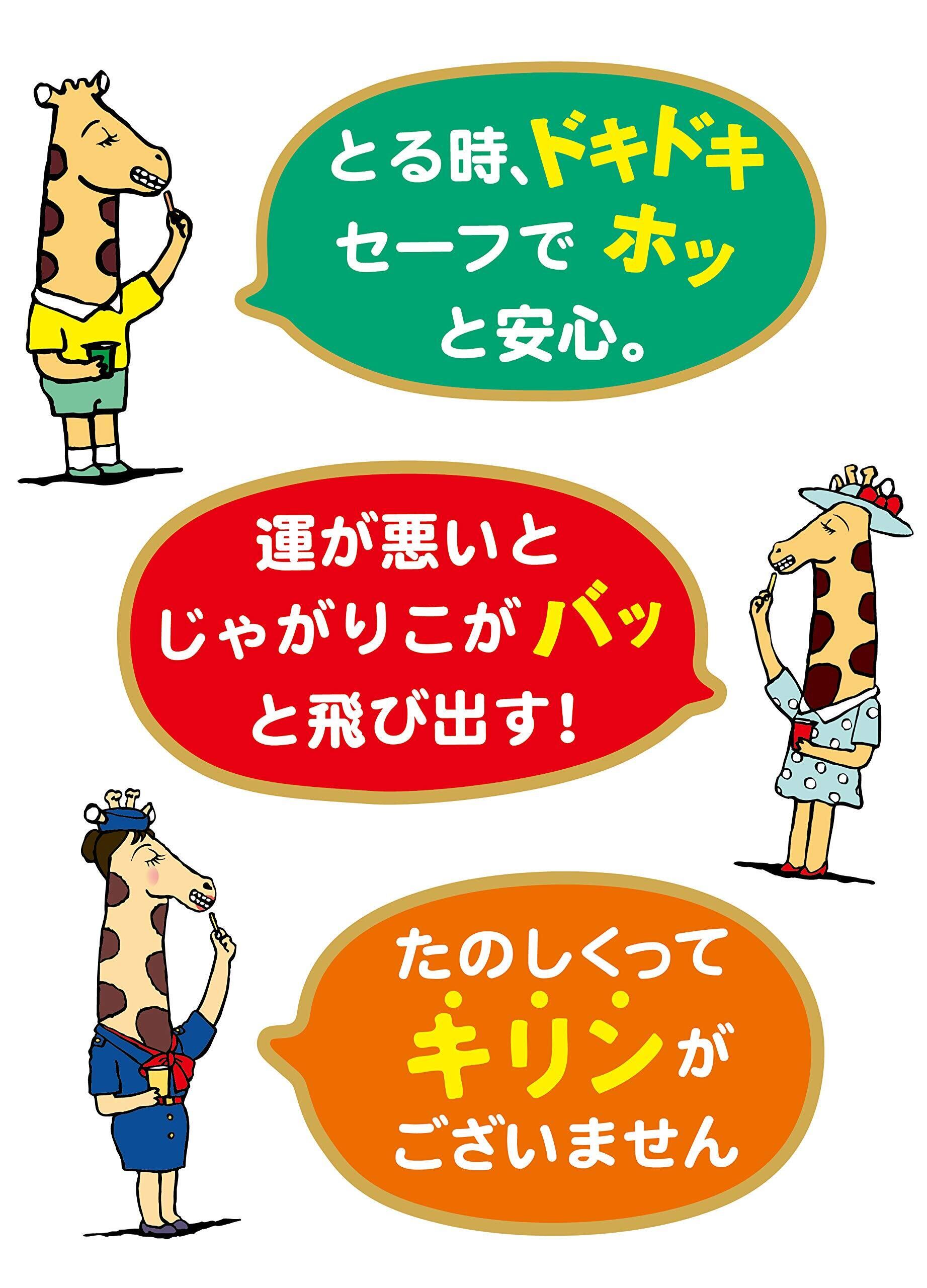 順番に1本ずつじゃがりこスティックを引いていきある時、ハズレのスティックを引くとバーンと飛び出すドッキリアクションゲームです。