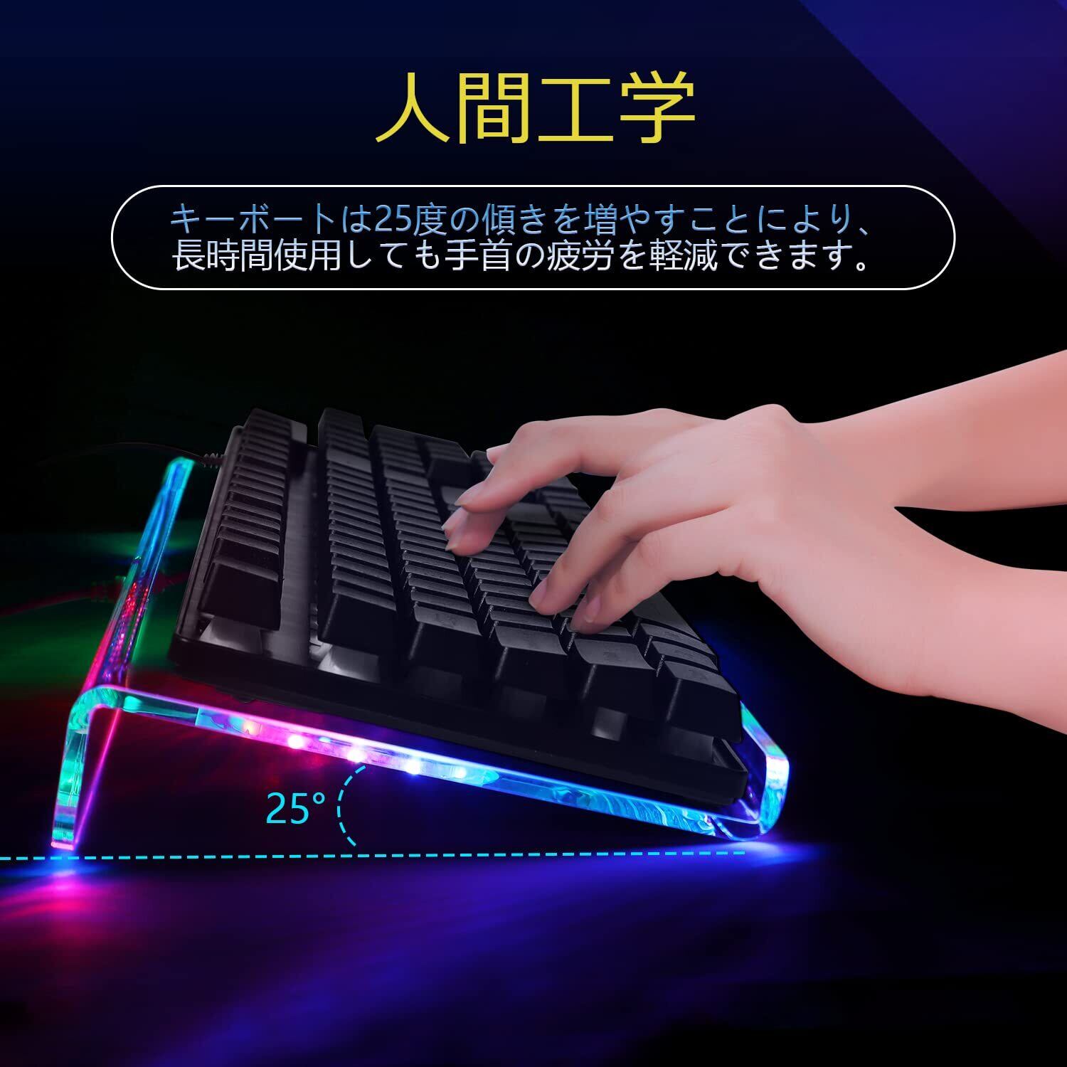 【人間工学なデザイン】: アクリルキーボードは25°の傾きをサポートし、サイズは17.44 x 7.4 x 2.13 インチ(約44 x 19 x 5cm)で、 快適なタイピング環境を提供し、手の疲れを和らげます。