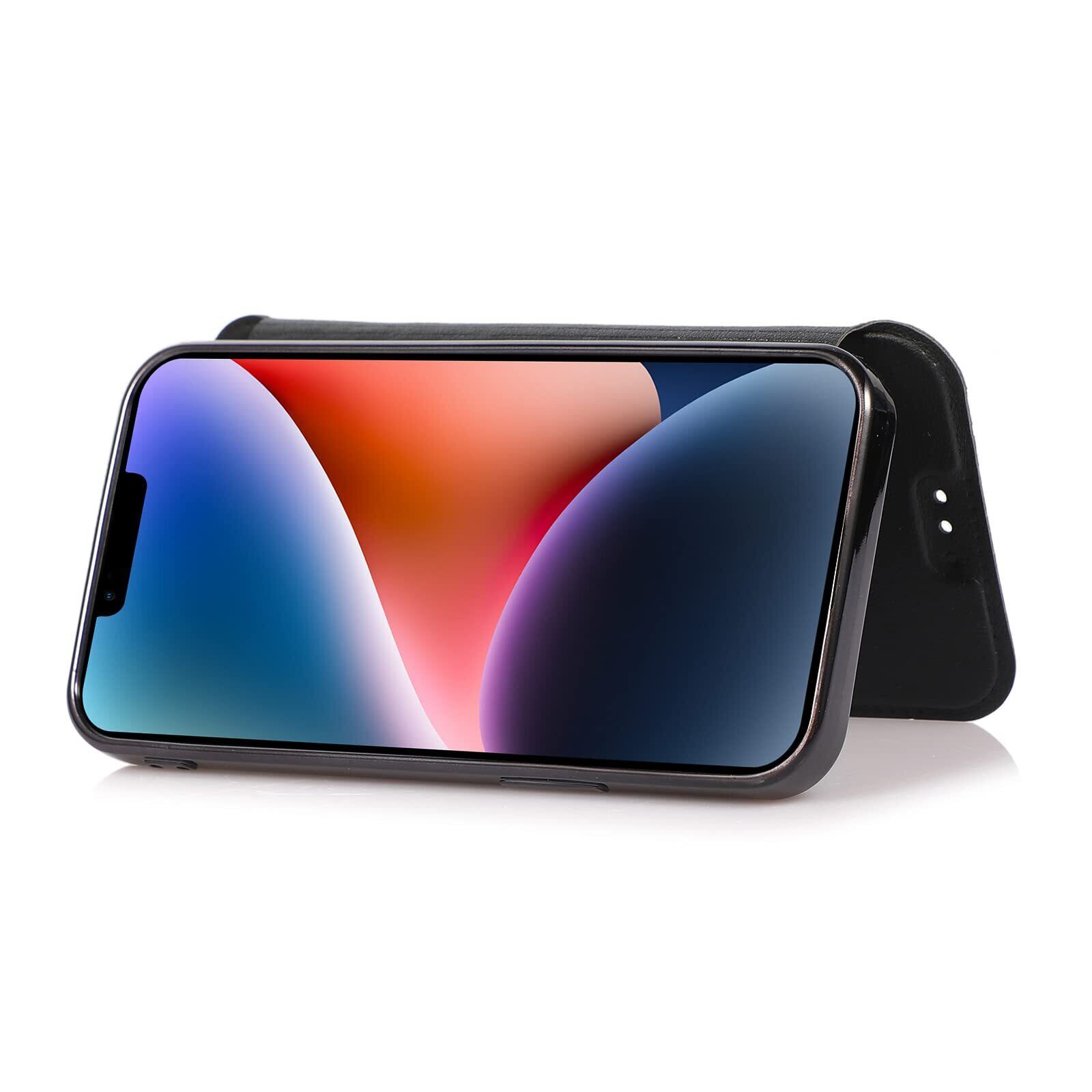 MuZiF iPhone14 用 手帳型ケース クリア 高級なPUレザー 耐衝撃性と耐摩耗性 14用 全面保護耐衝撃、カード収納、カバー 軽量 アイフォン14 用 手帳カバー (iPhone 14,ブラック)