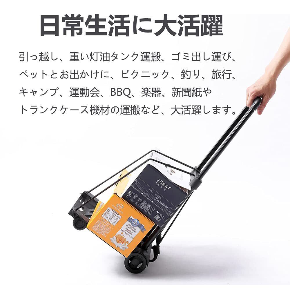 Paulele(パウレレ)キャリーカート 小型台車 折りたたみ式 軽量 ハンドキャリー 耐荷重50kg 固定ロープ付属 引越し 買い物 防災用品 家庭用 旅行用
