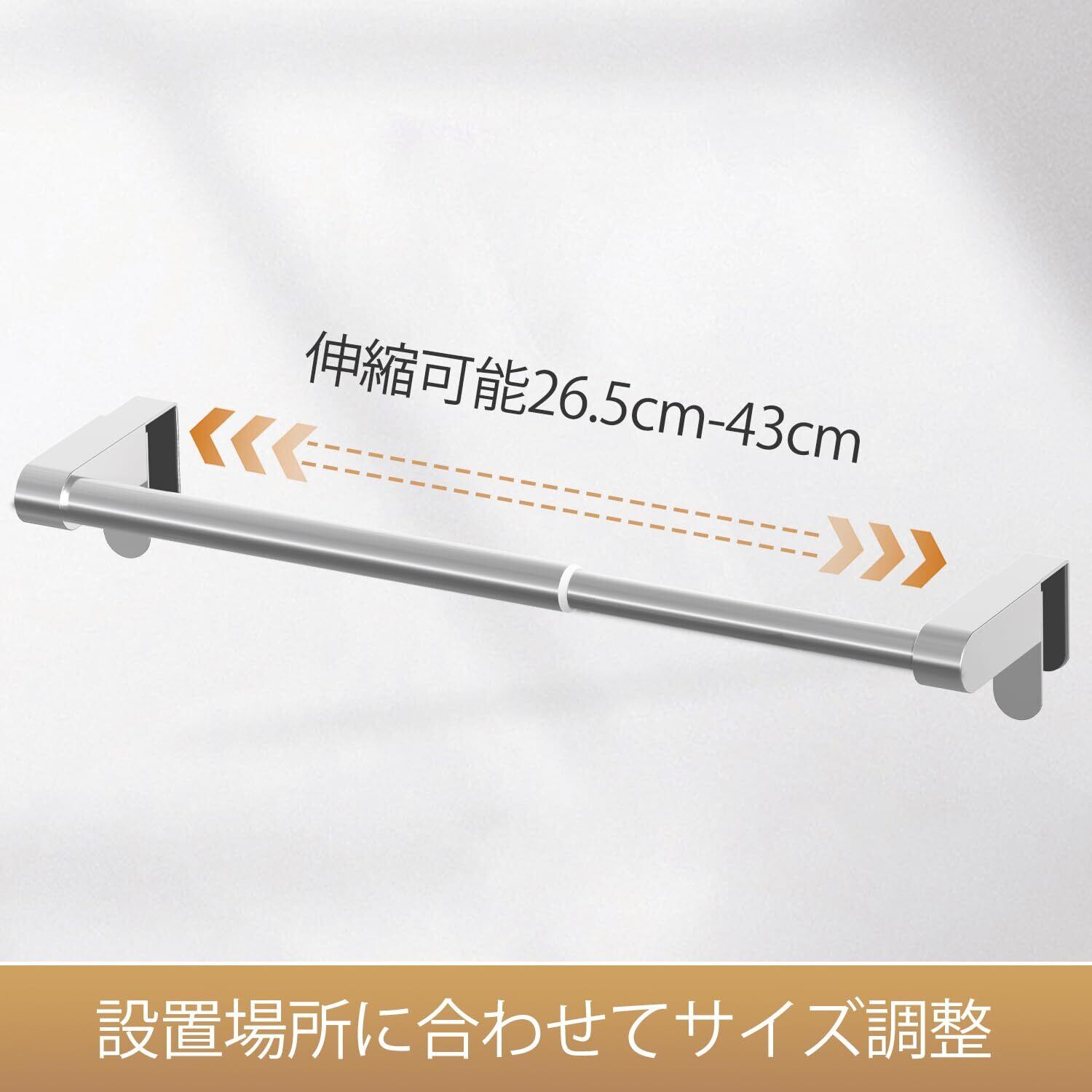 VEHHE タオル掛け 長さと幅を調整可能なタオルハンガー EVAフォームパッド付きステンレス製 多機能W7×L26.5-43×H6cm 取付簡単(シルバー)