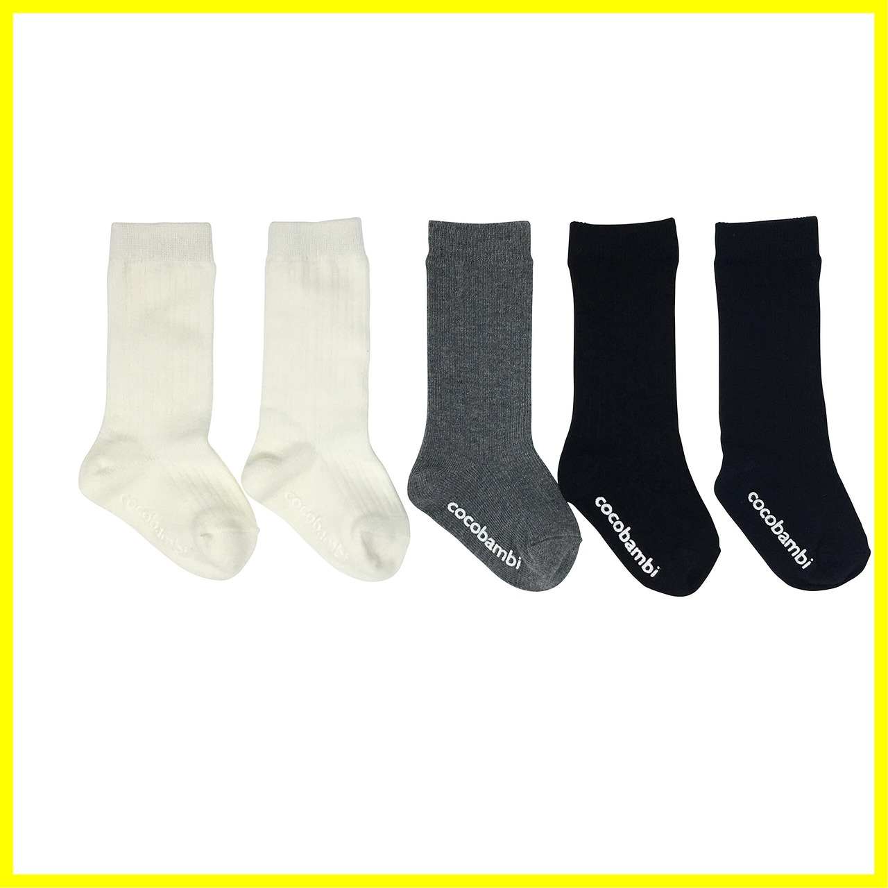 シンプルなリブ風デザインで幅広いコーディネートが可能な5足組ハイソックスです。