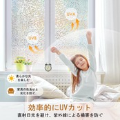 目隠し・日射調整・UVカット:天気や昼夜を問わず、20cm以上離れていれば、室内が見えにくく!また、 UVA 84%・UVB99% 以上カットし、明るさを保ちつつ、内装を保護します。カーテンとさらば!浴室など近距離での目隠し効果が大事なところにはお勧めしません。