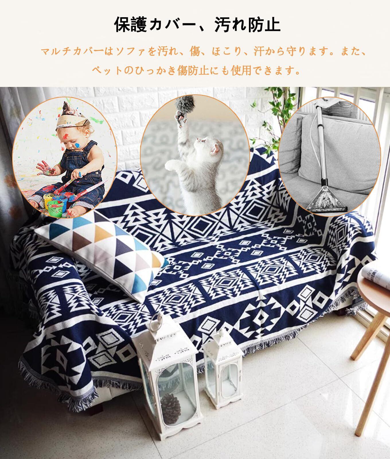 TMVOK マルチカバー ブランケットフリンジ付き ソファカバー おしゃれ 北欧風 ソファーかばー リバーシブル 犬猫傷 防止 保護カバー 綿 2人掛け 3人掛け 肘付き 肘なし カウチ カバー テーブルクロス 長方形 大きい 洗える 四季通用 180*300cm